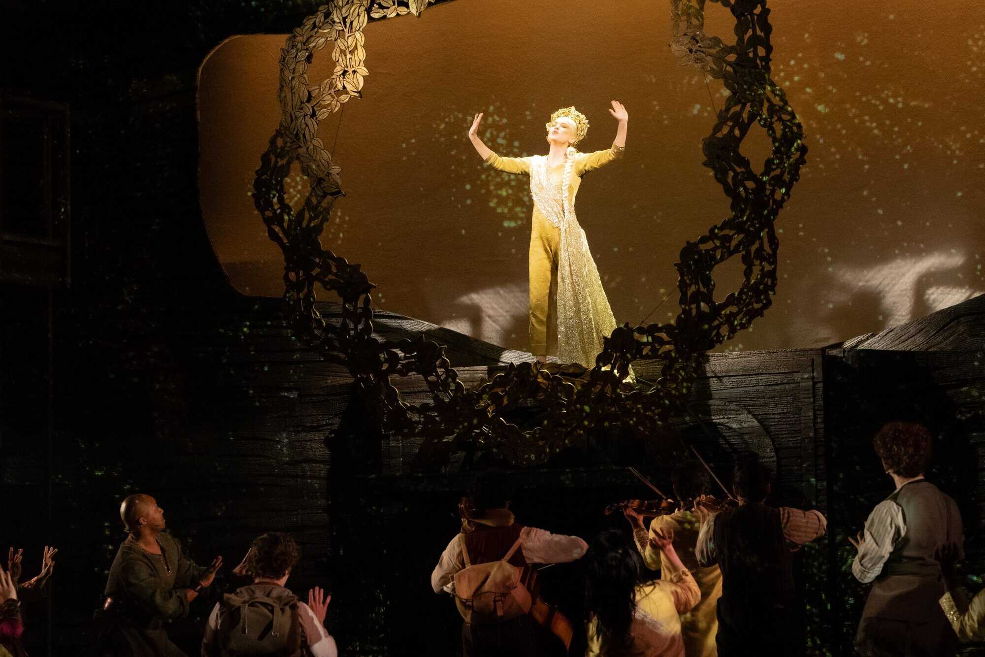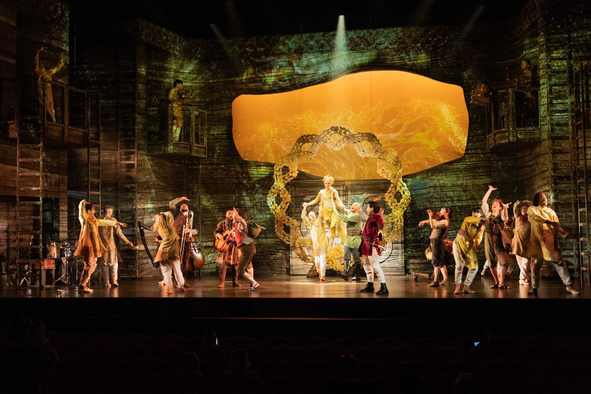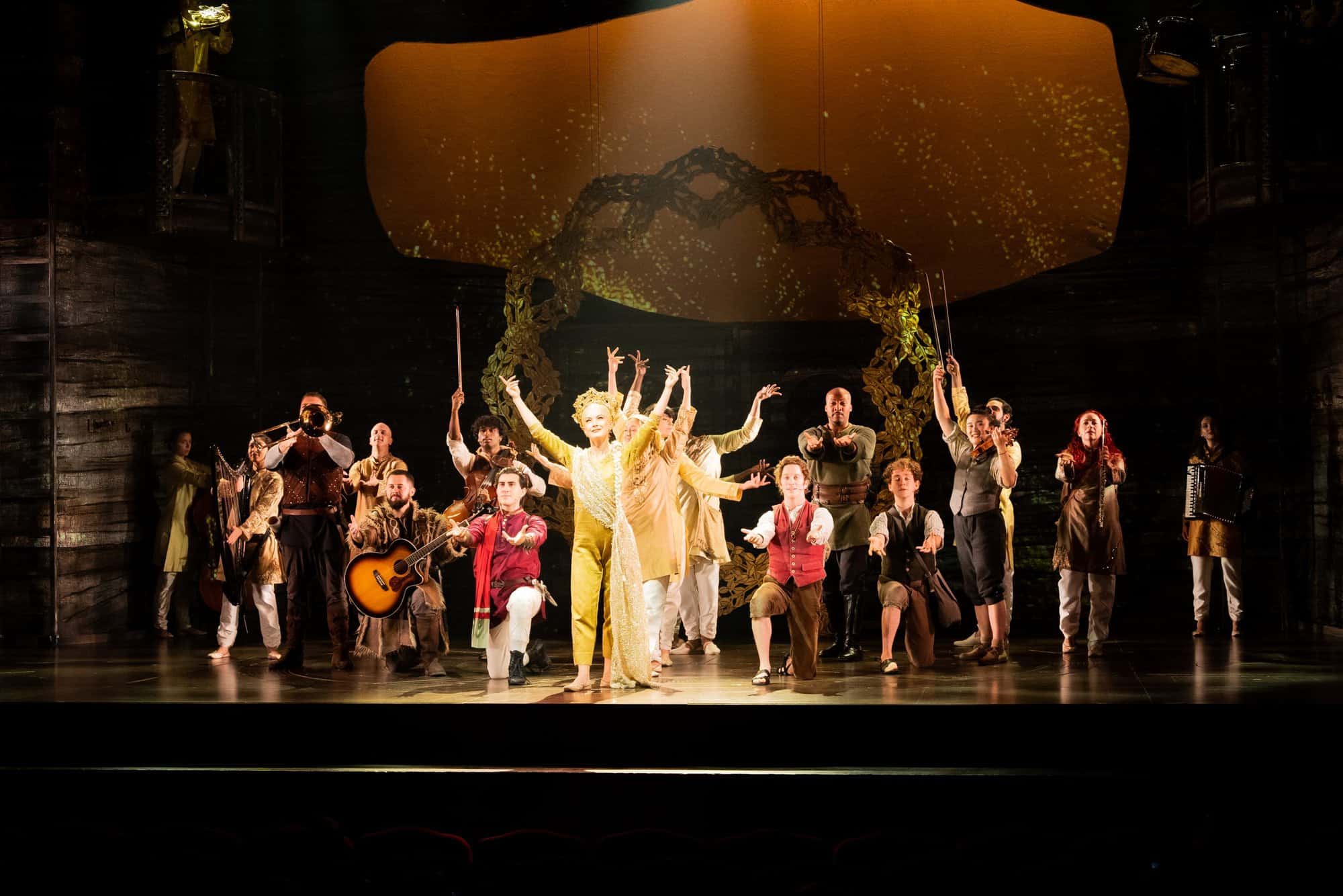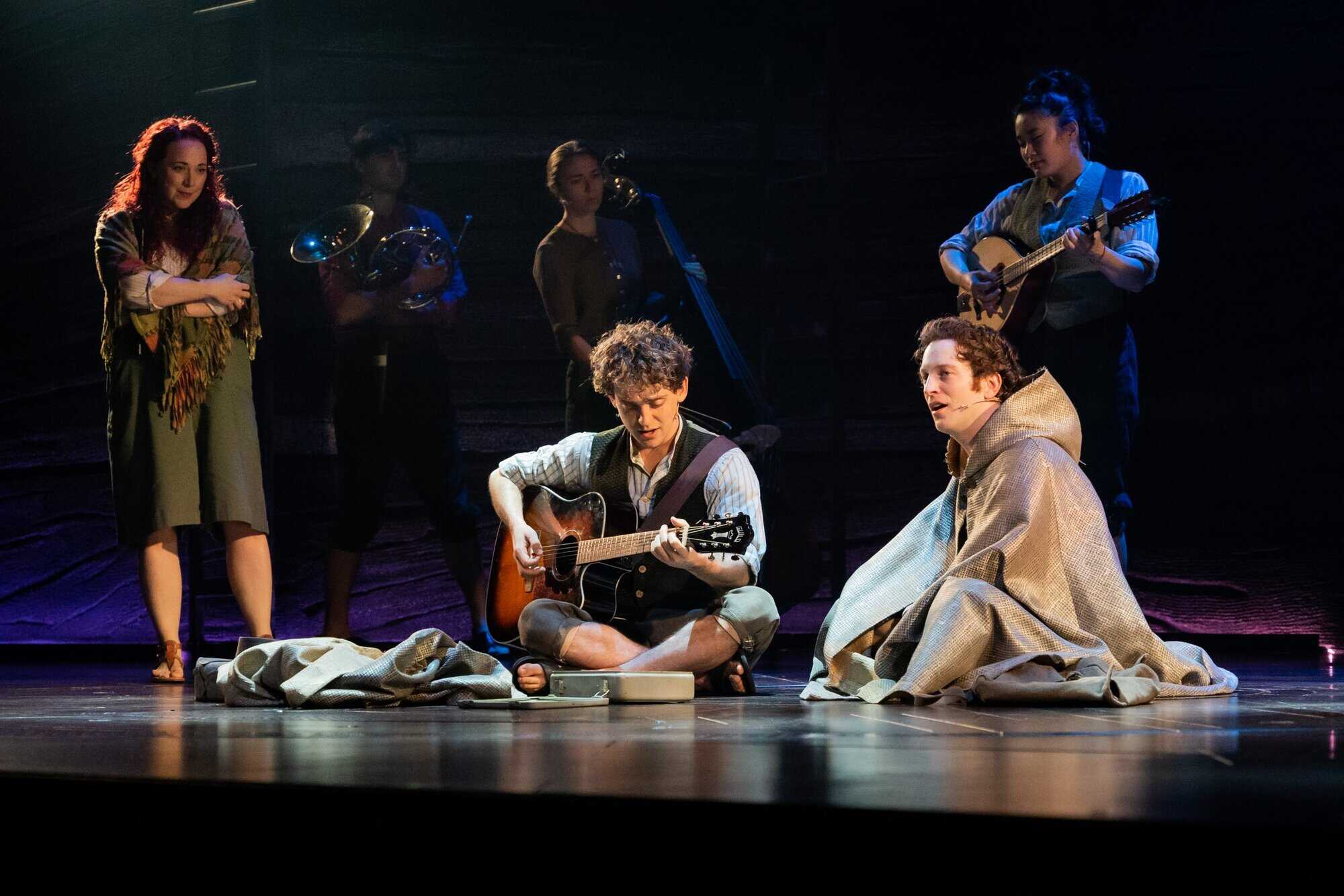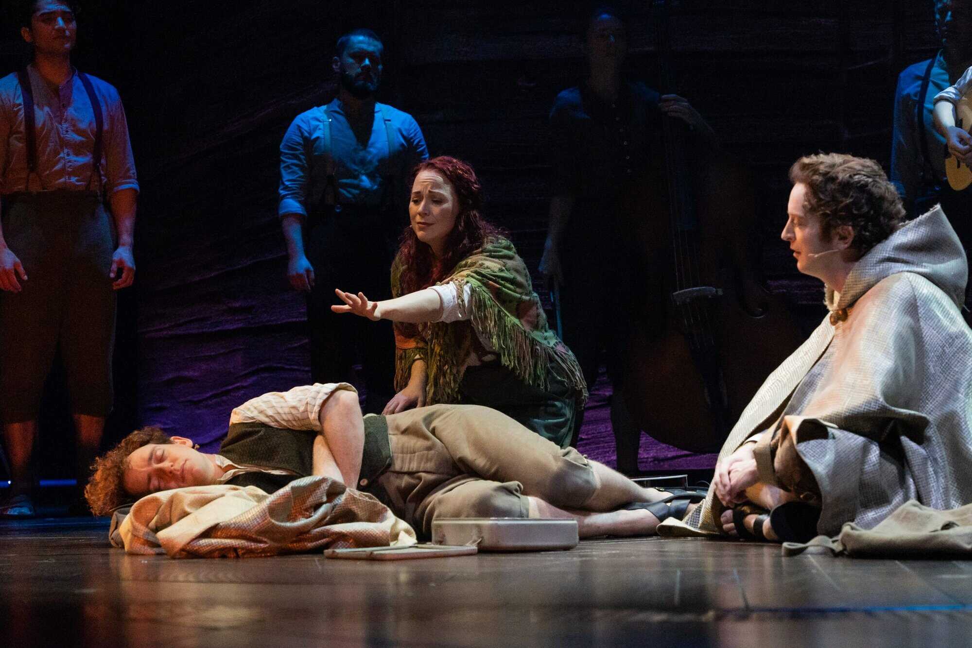 There is no orchestra in a pit, but rather, the 24 actors perform all the music themselves using over 40 instruments including a harp. The sound is suitably Gaelic and the performances are uniformly excellent.