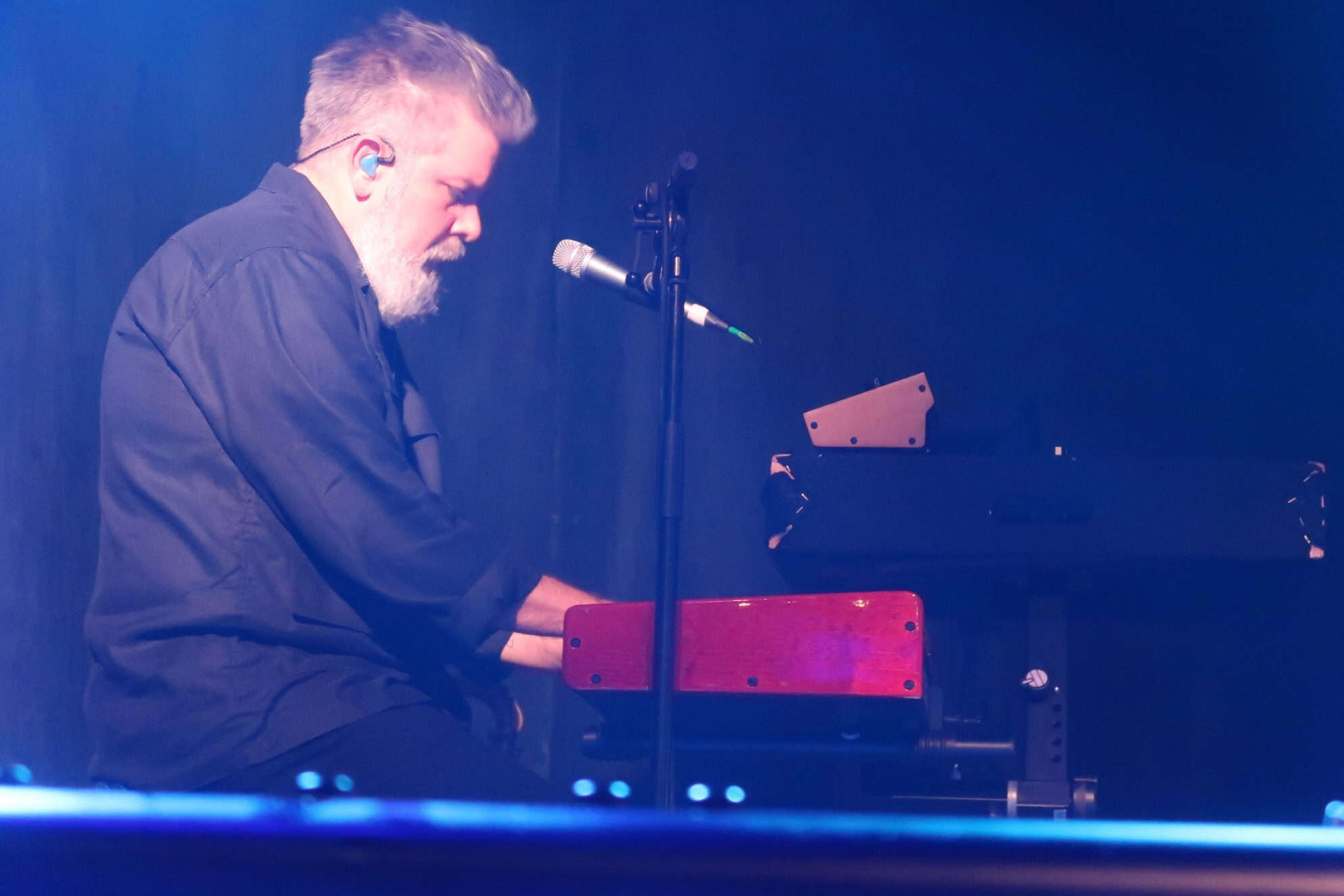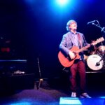 Darkness envelopes the room, and John Darnielle is joined by John Wurster on drums and Matt Douglas on keys, guitar, bass and saxophone. The band are touring their latest album, 2025’s Through This Fire Across from Peter Balkan, and as such they kick off with Rocks In my Pocket from it, thus the rollercoaster ride that is a The Mountain Goats show begins.