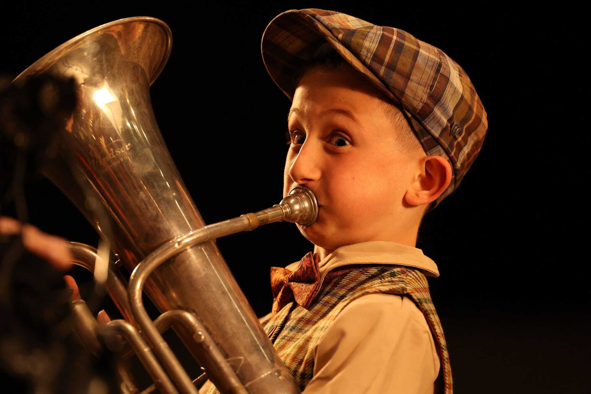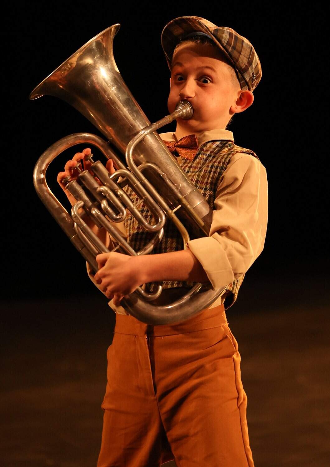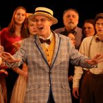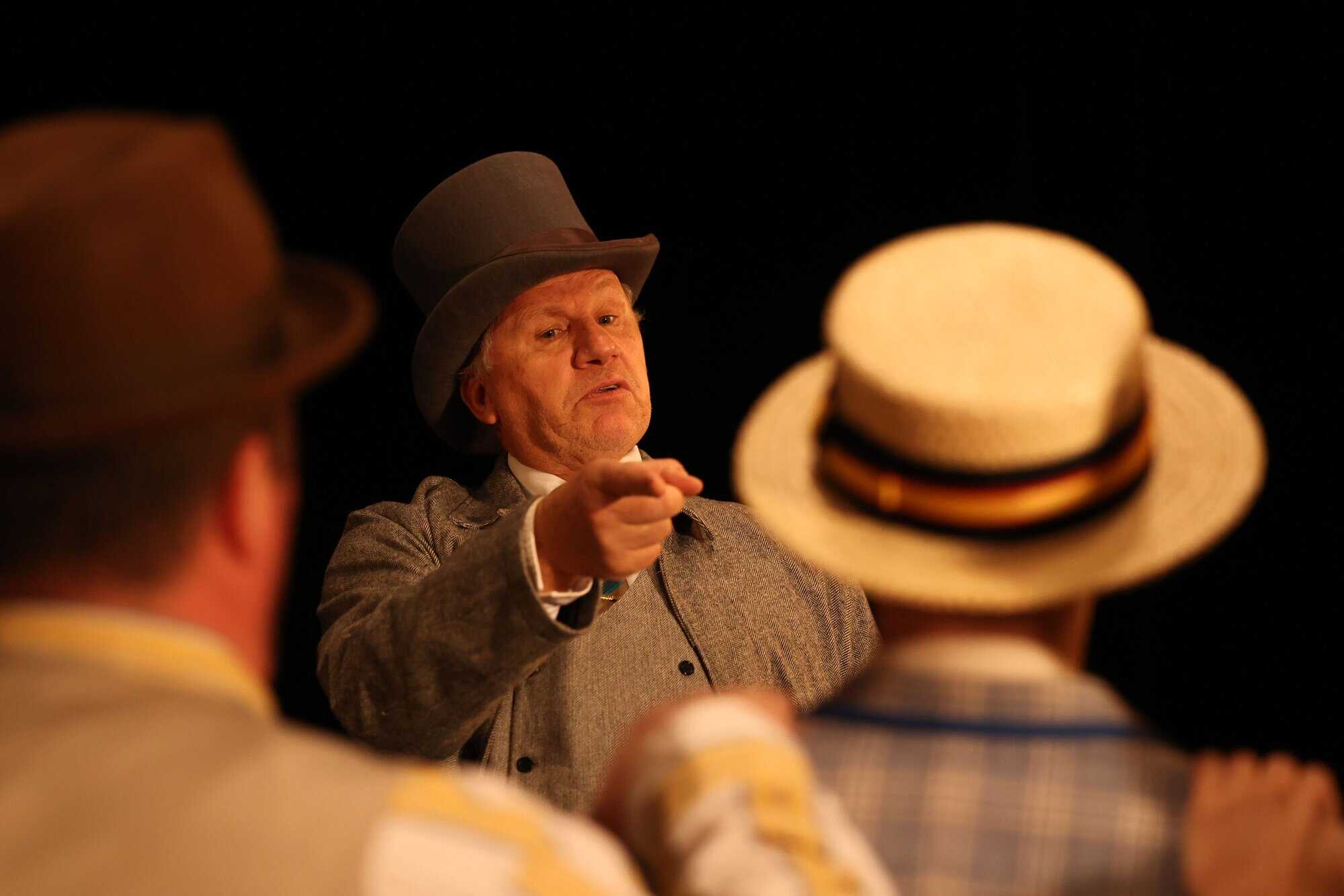The story follows con man “Prof” Harold Hill (Kyle) as he attempts the dupe the folks who live in the small town of River City, Iowa. Hill cons the townspeople into believing he will form a boys’ marching band despite the fact that he has no musical abilities and only wants to run off with money given for uniforms and instruments.