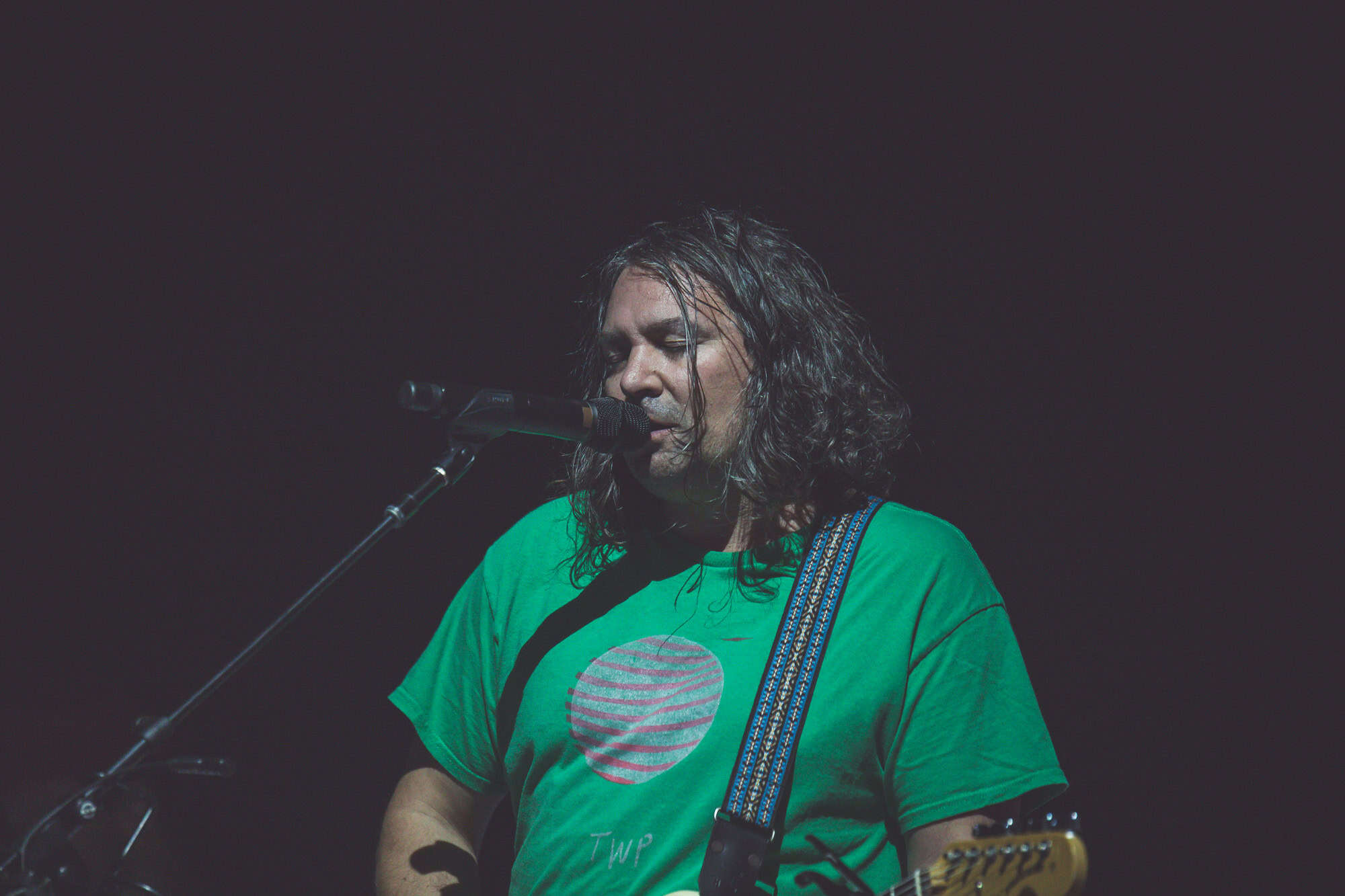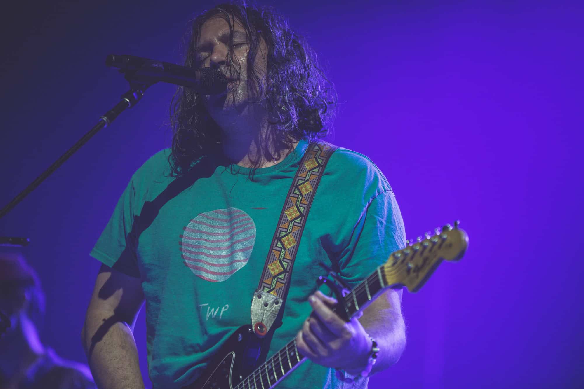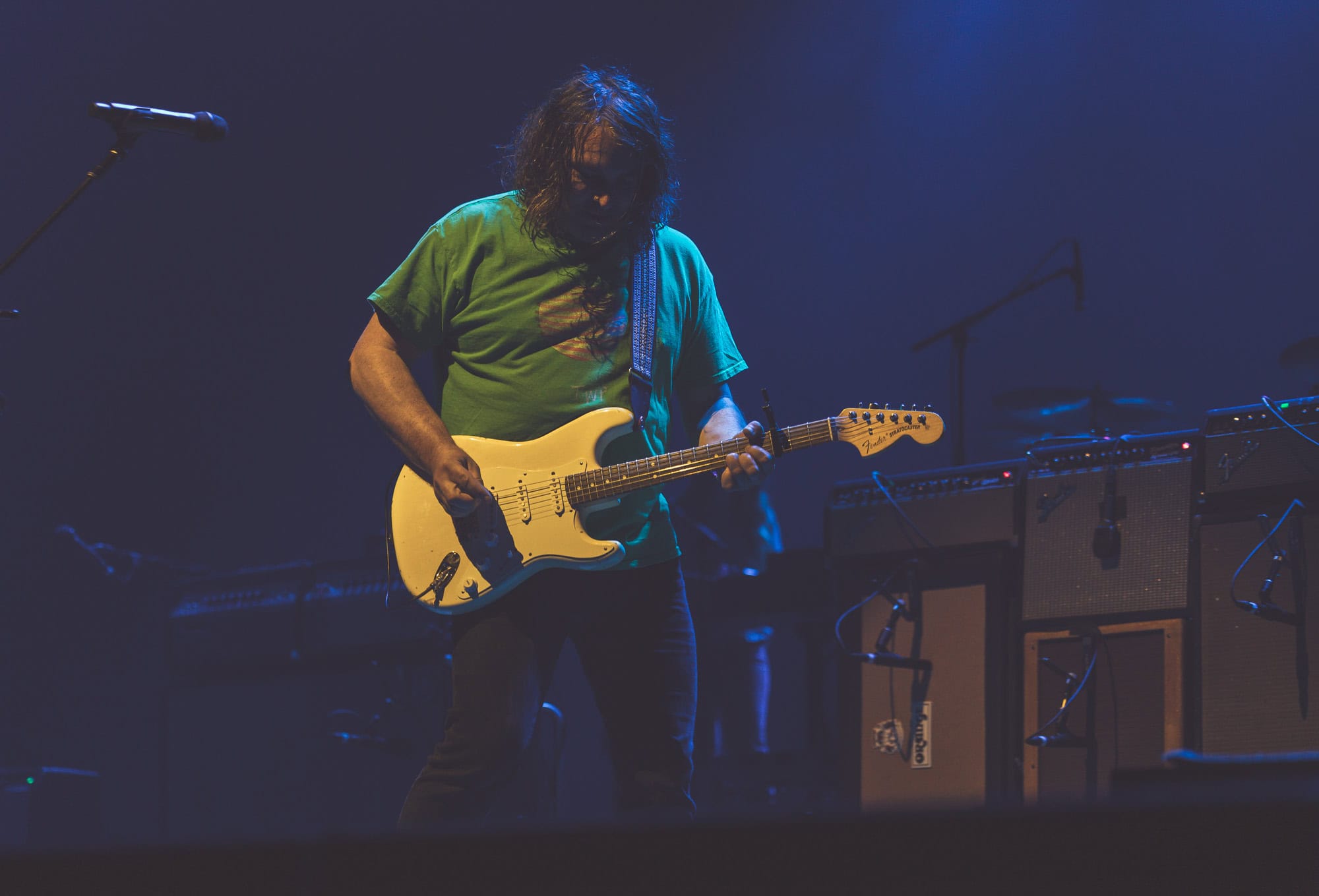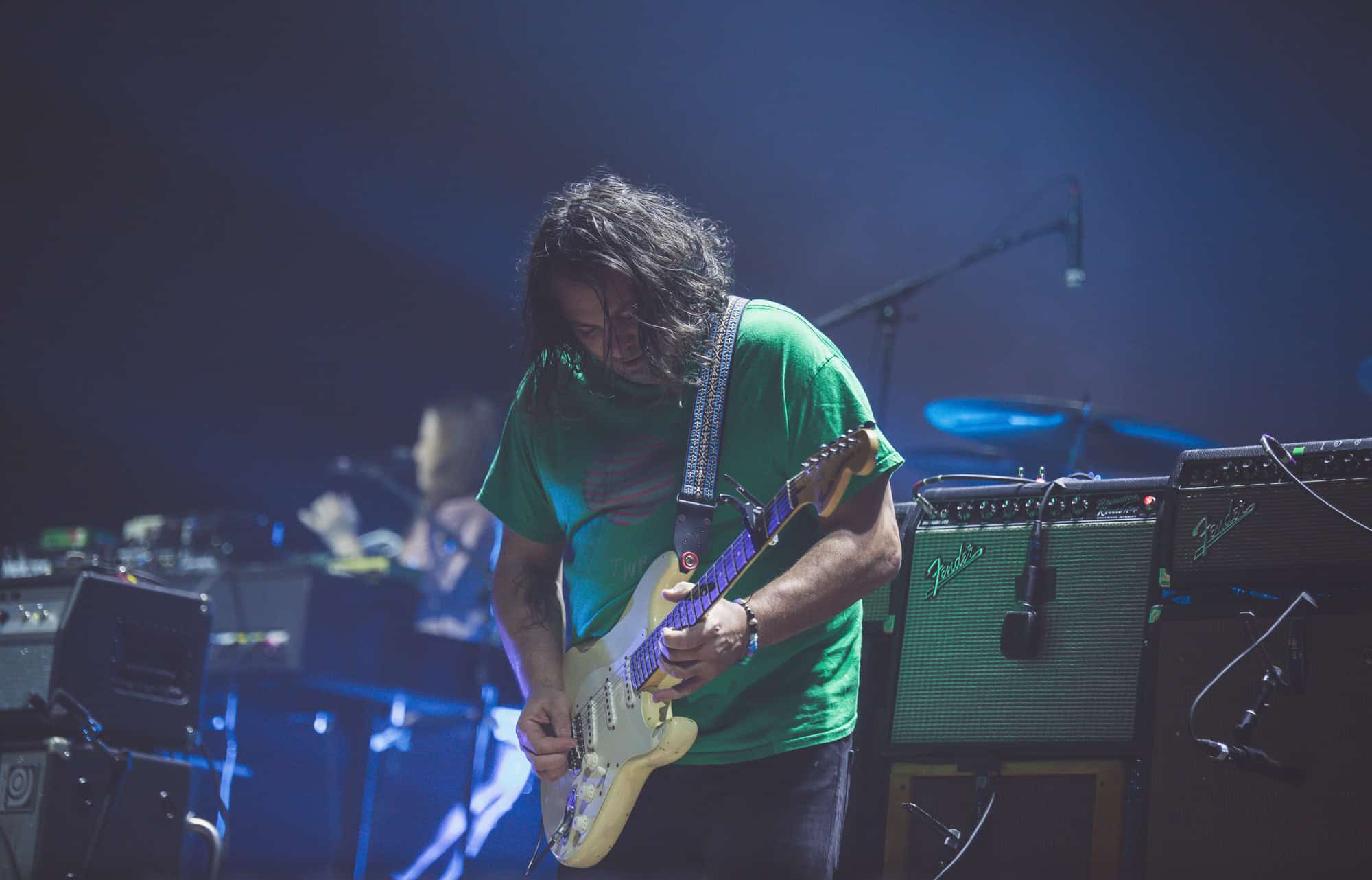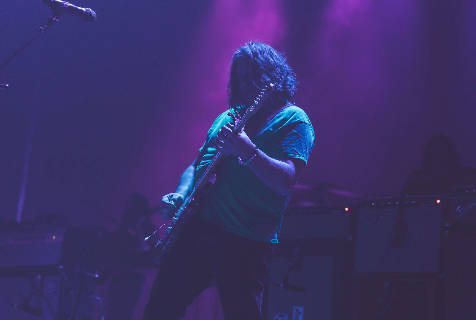 Granduciel is a passionate figure to watch. Plain green T-shirt, moving as if guitar is body-part. Mop of hair at time obscuring his face, suggestive of mate Kurt Vile whose bands they each helped form.