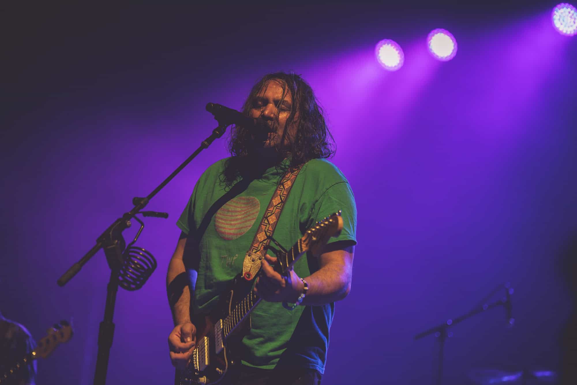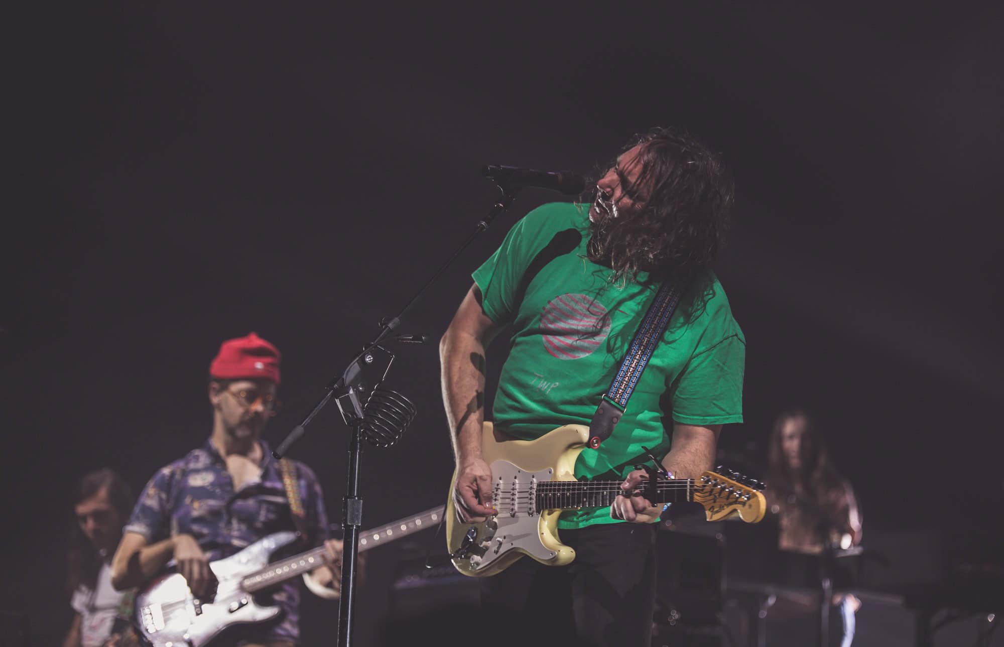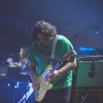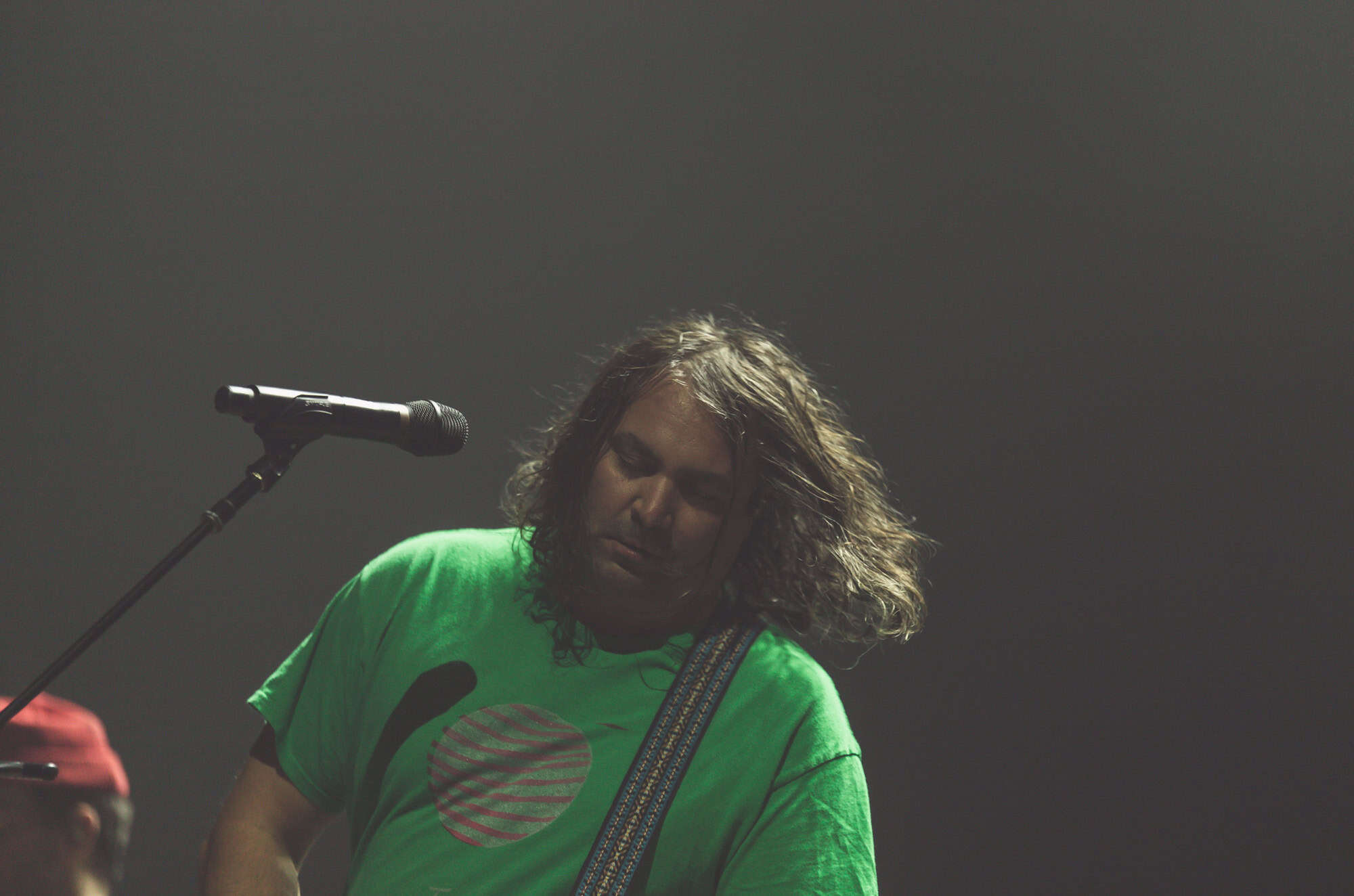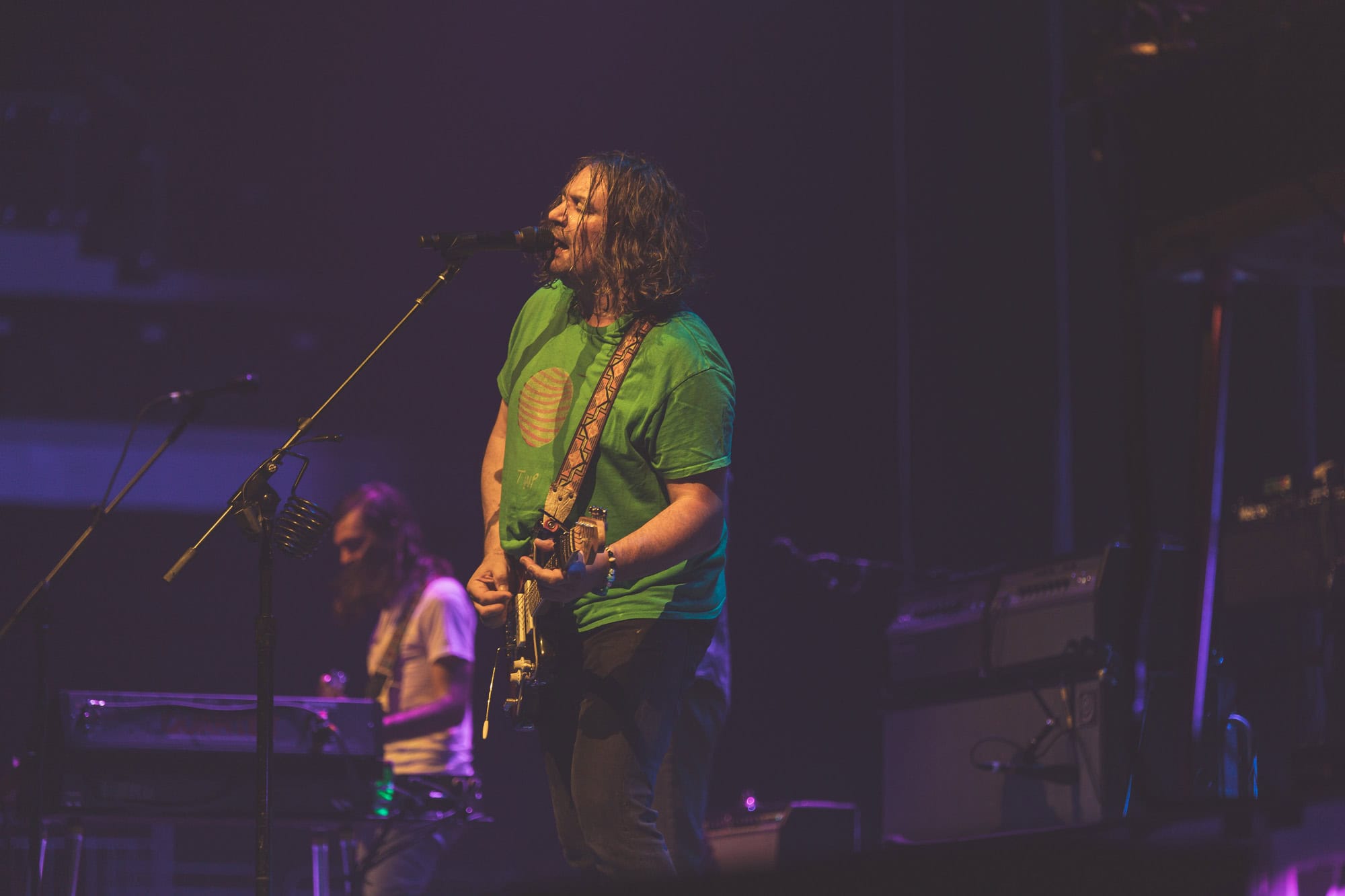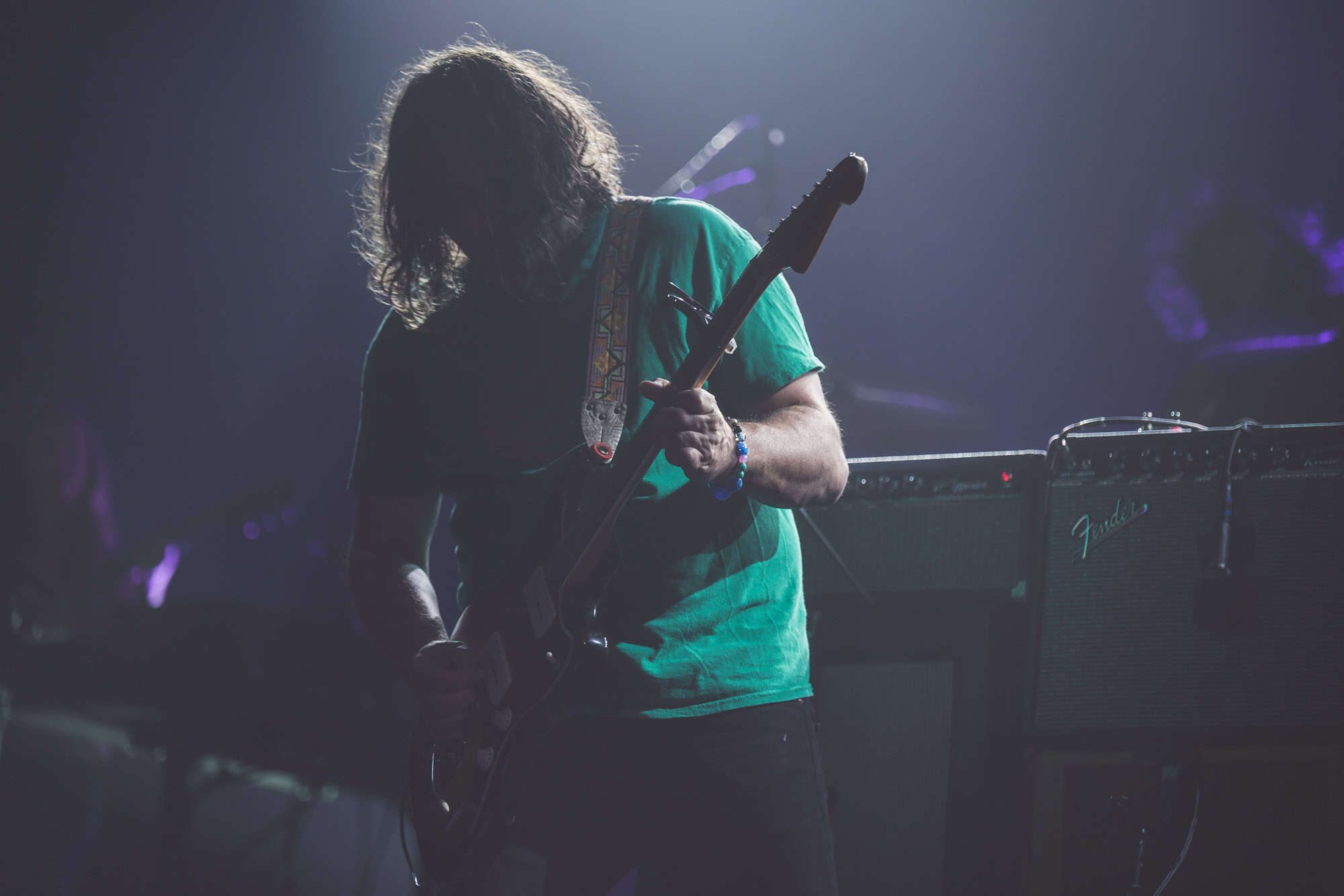 Granduciel is a passionate figure to watch. Plain green T-shirt, moving as if guitar is body-part. Mop of hair at time obscuring his face, suggestive of mate Kurt Vile whose bands they each helped form.