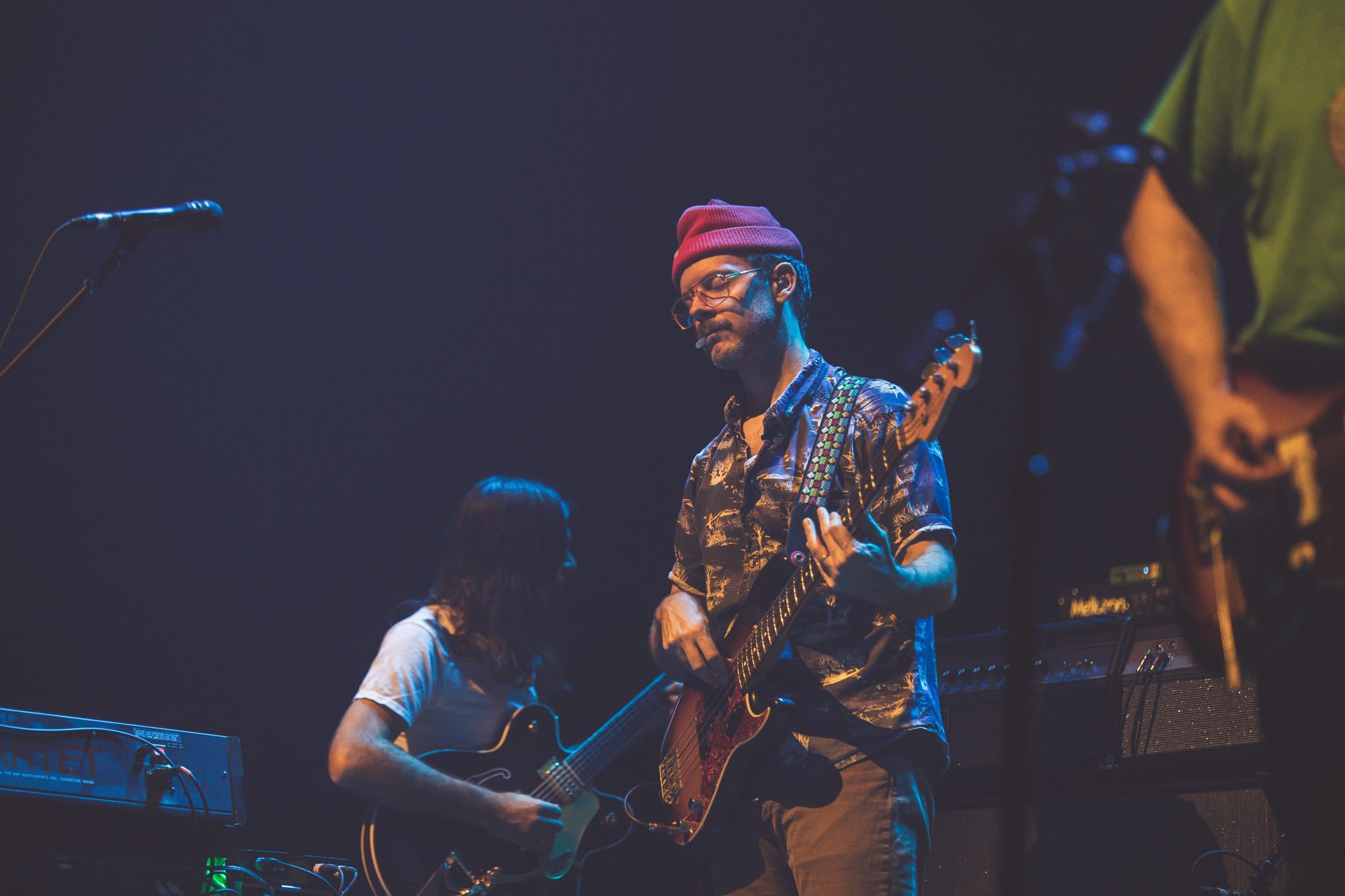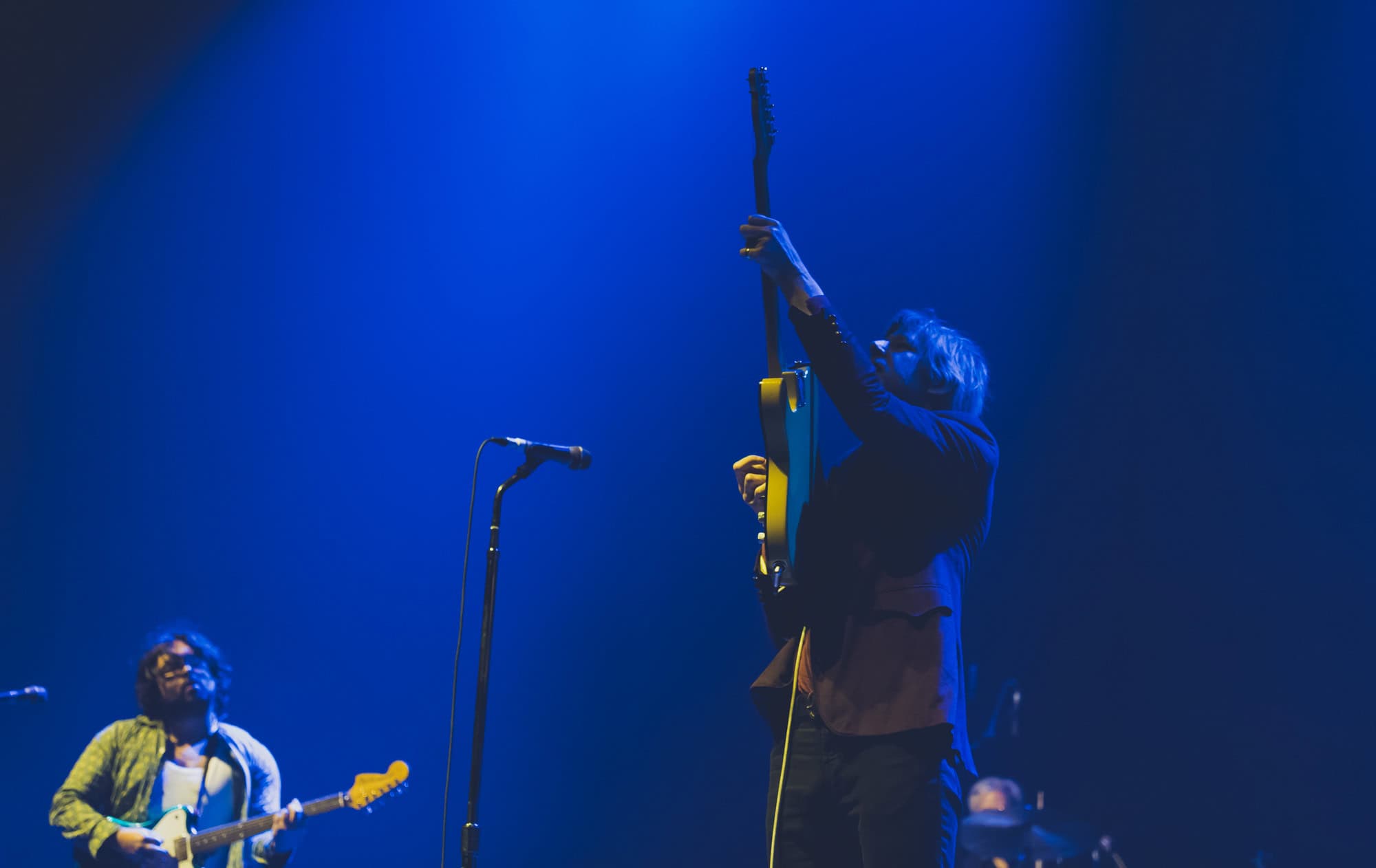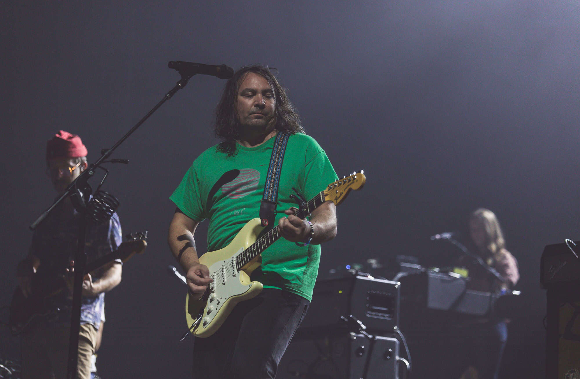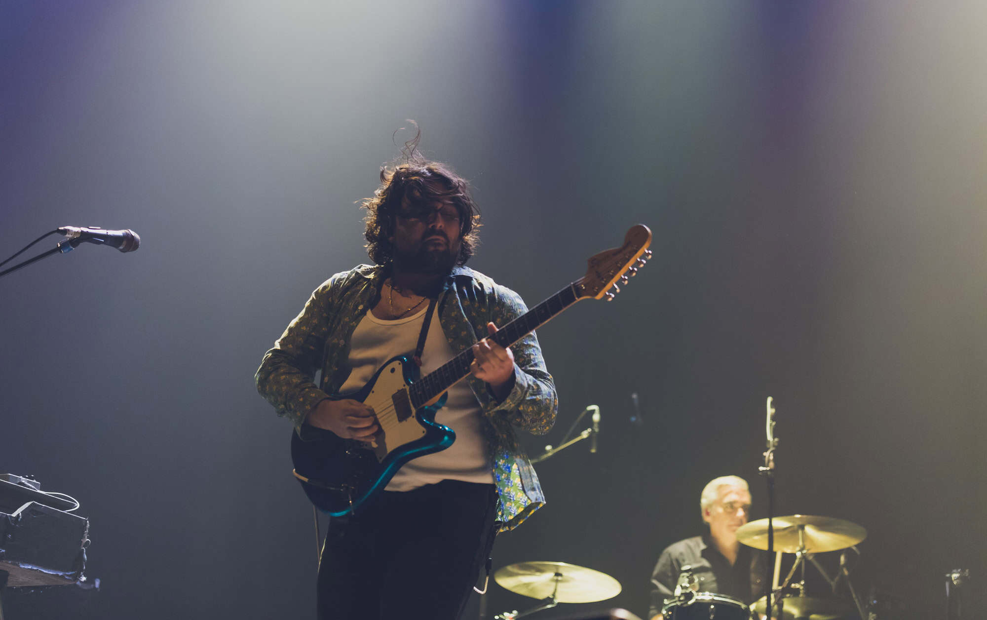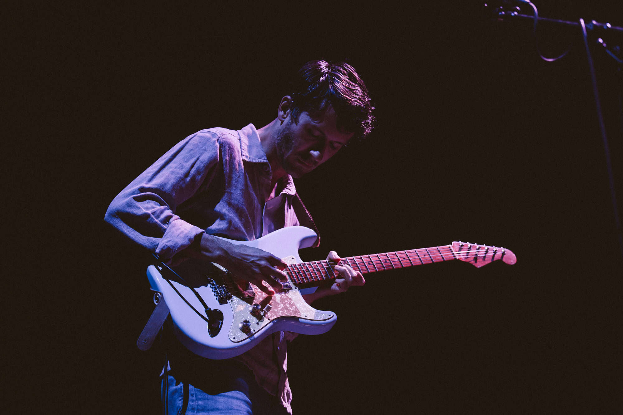 Granduciel is a passionate figure to watch. Plain green T-shirt, moving as if guitar is body-part. Mop of hair at time obscuring his face, suggestive of mate Kurt Vile whose bands they each helped form.