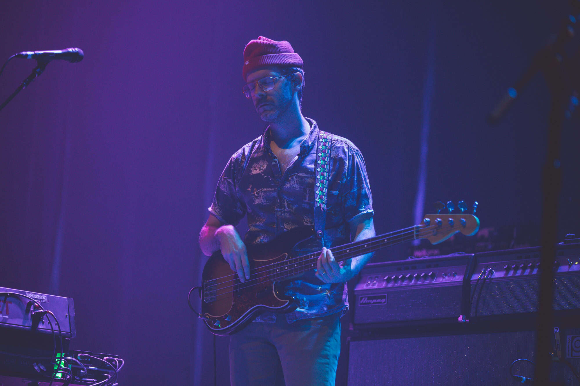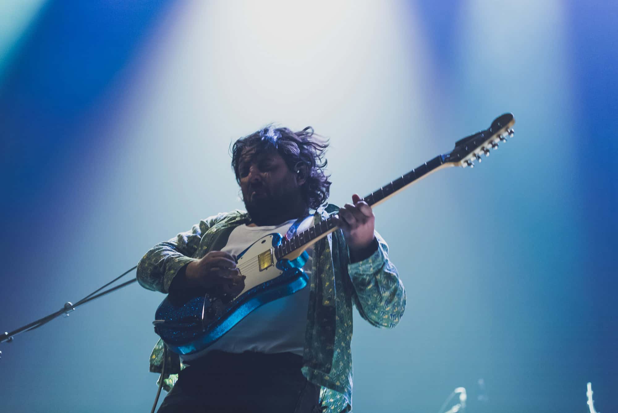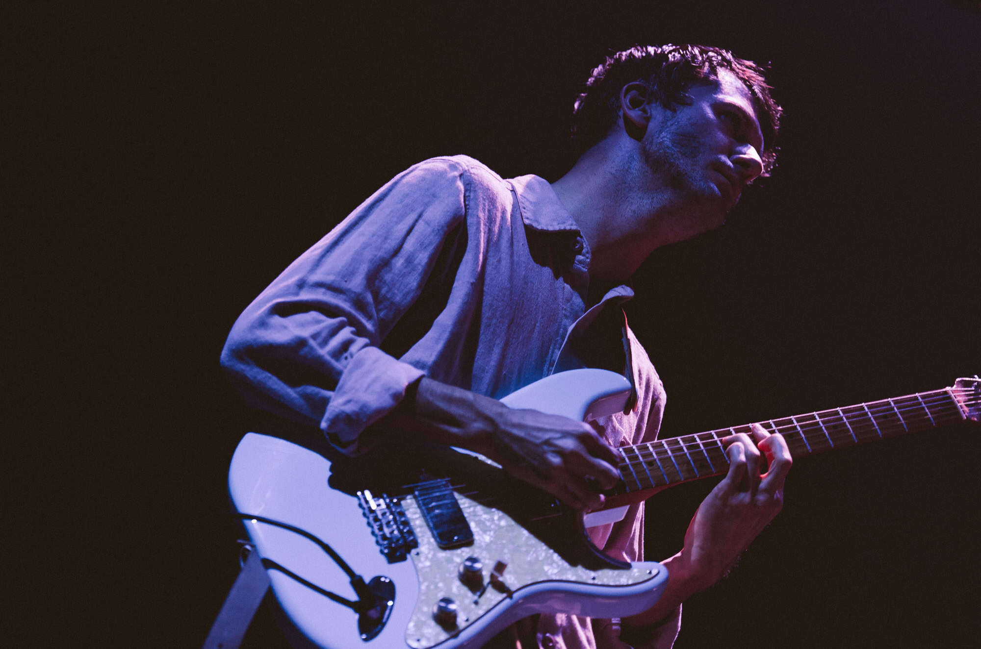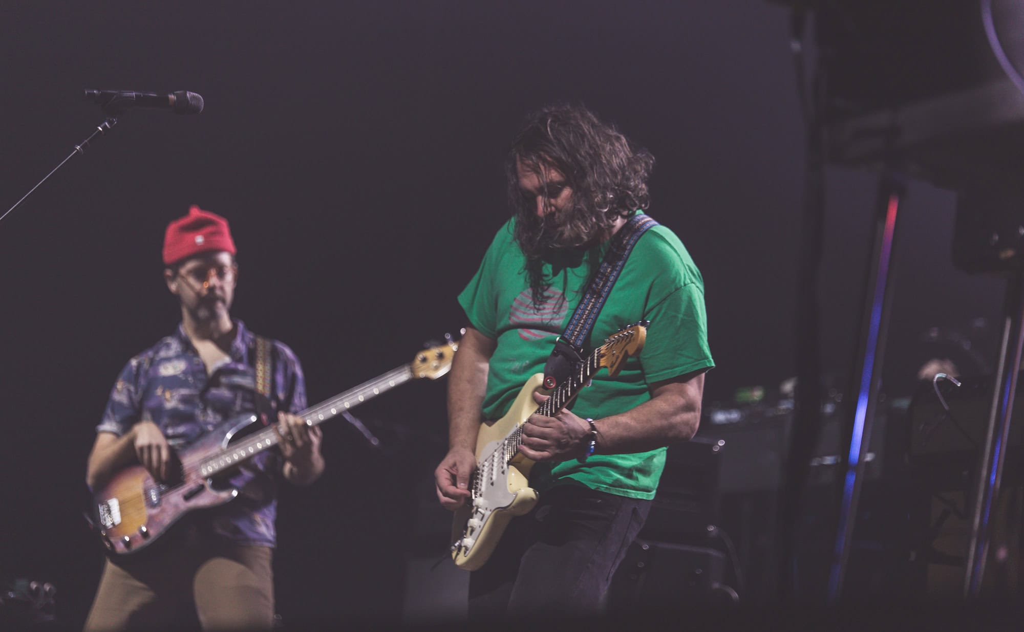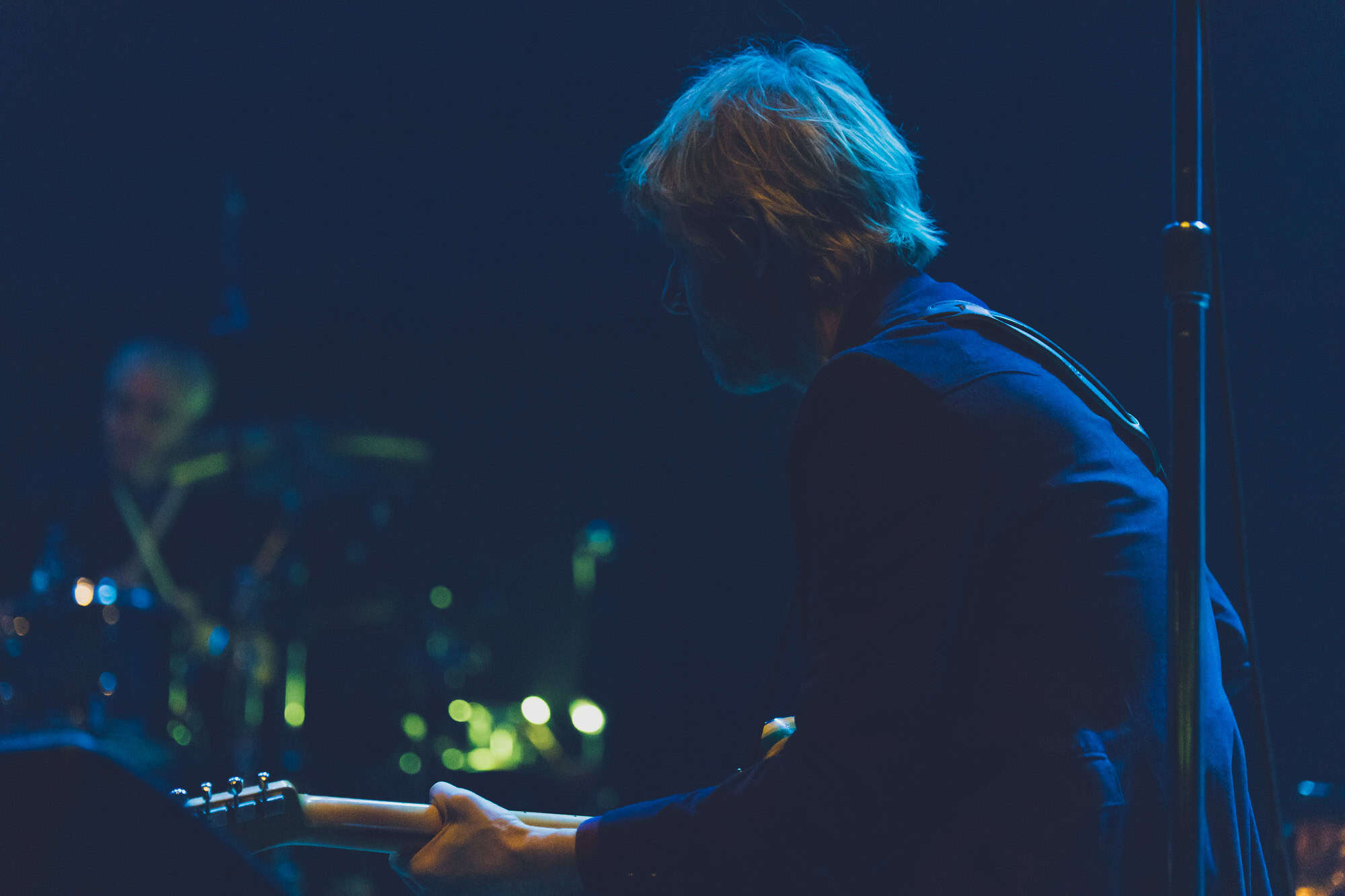 Granduciel is a passionate figure to watch. Plain green T-shirt, moving as if guitar is body-part. Mop of hair at time obscuring his face, suggestive of mate Kurt Vile whose bands they each helped form.