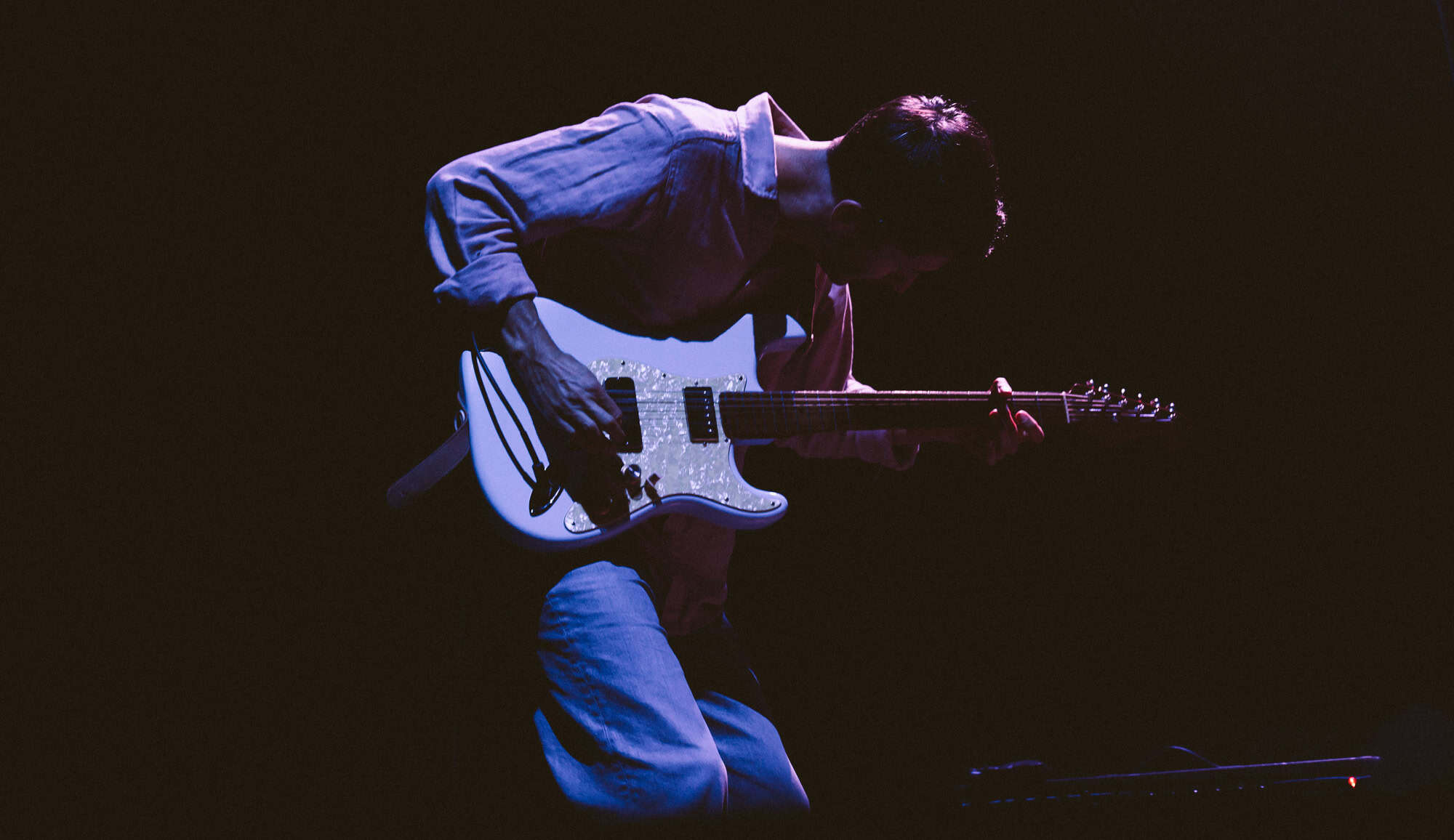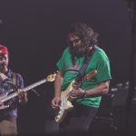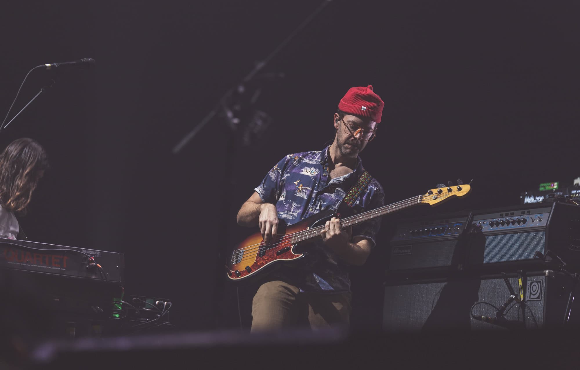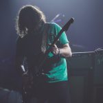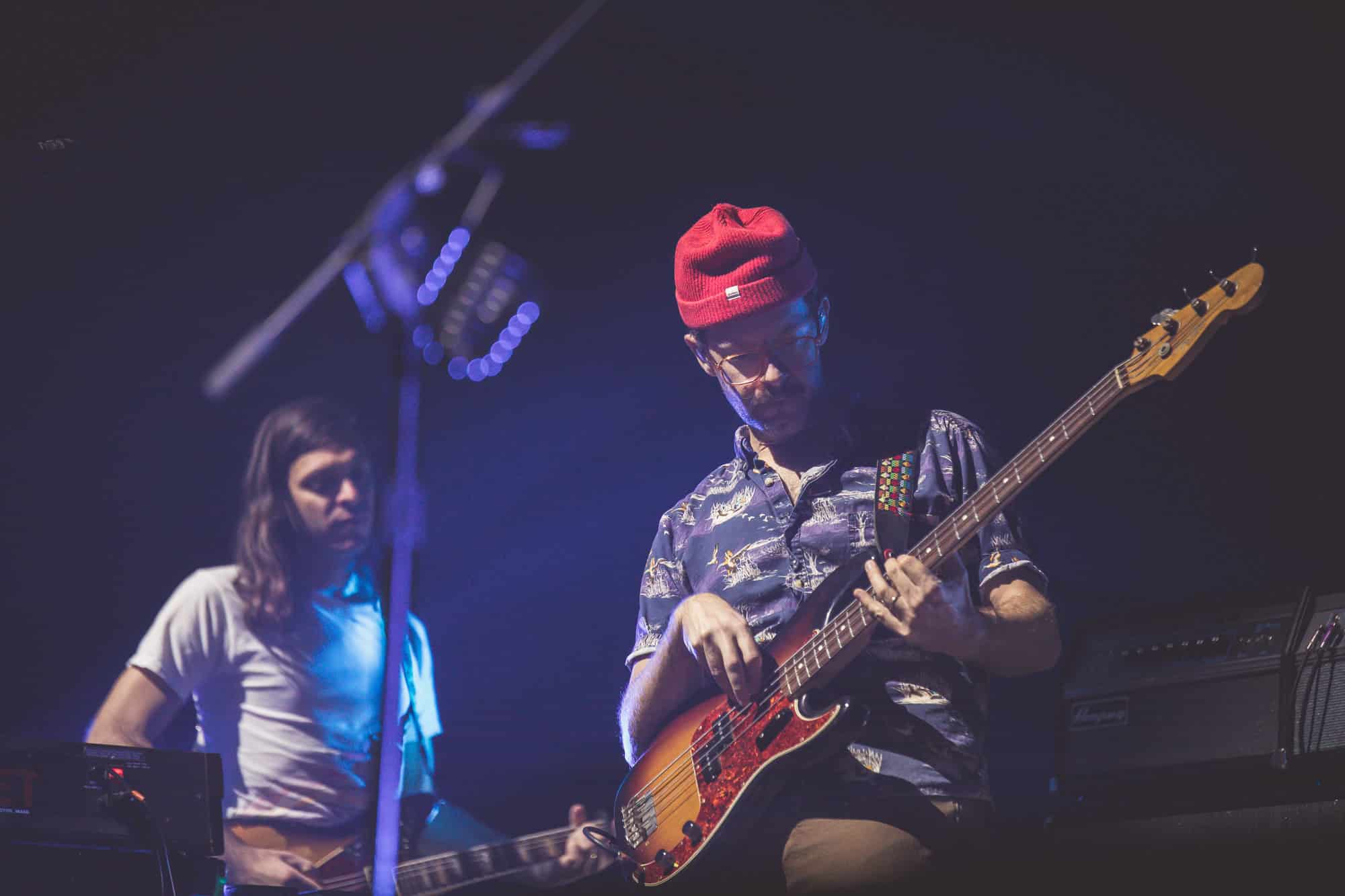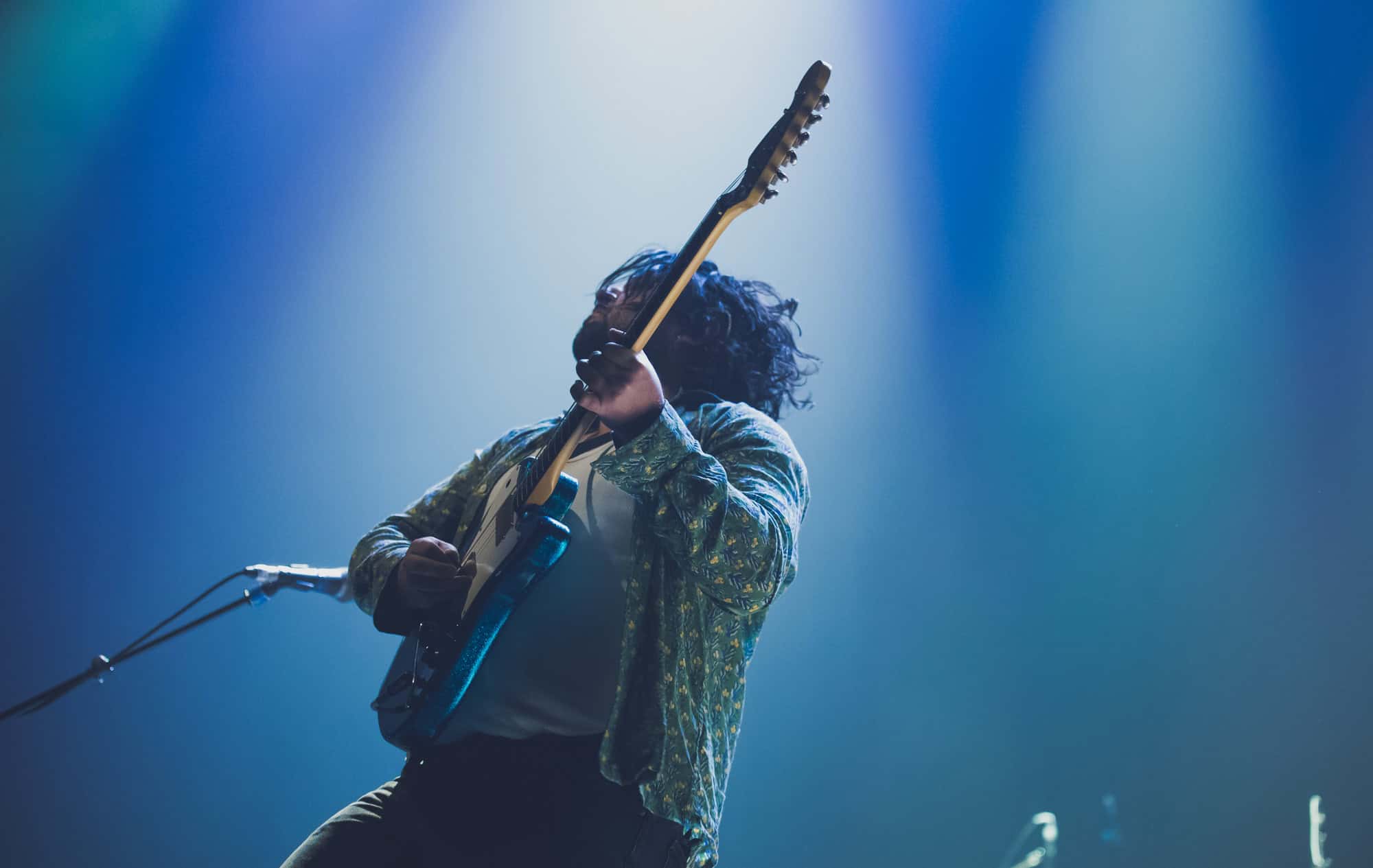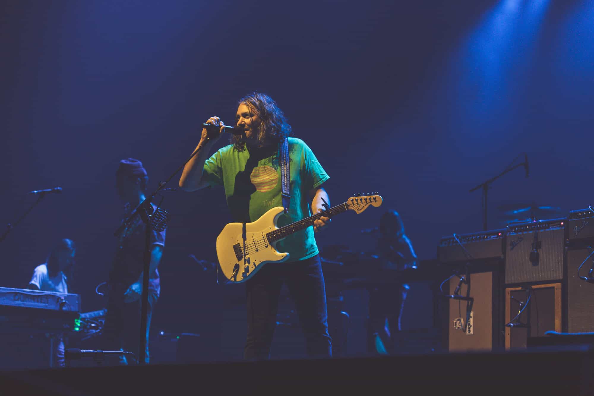 Granduciel is a passionate figure to watch. Plain green T-shirt, moving as if guitar is body-part. Mop of hair at time obscuring his face, suggestive of mate Kurt Vile whose bands they each helped form.