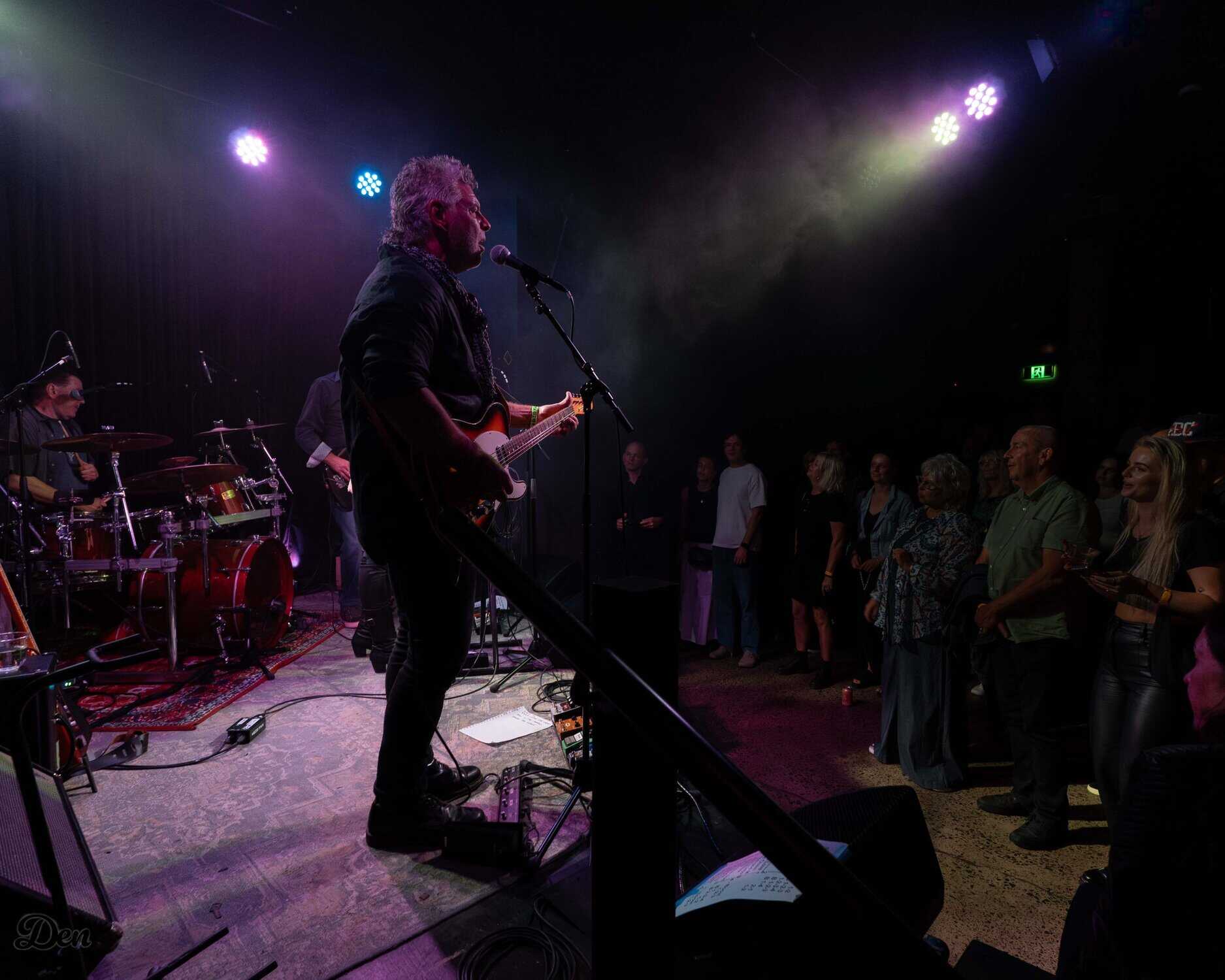 The main act leans heavily on 70’s gypsy rock (evidenced by storming covers of Fleetwood Mac’s The Chain and Heart’s Barracuda played expertly. It’s the originals which give the band space to shine, especially Kirsty’s witchy-woman vocals on Really Into You and Closer (inspired by Kirsty’s son) and Shut the Door Charley. The rapport between band and audience is evident, including a heartfelt and genuine tribute to those affected by the 2023 Anniversary Weekend floods.  Big Fan is a small but inviting space with superb sound and an artistically inclusive vibe – perfect for the hometown heroes Tinn People to strut their 70’s rock swagger.