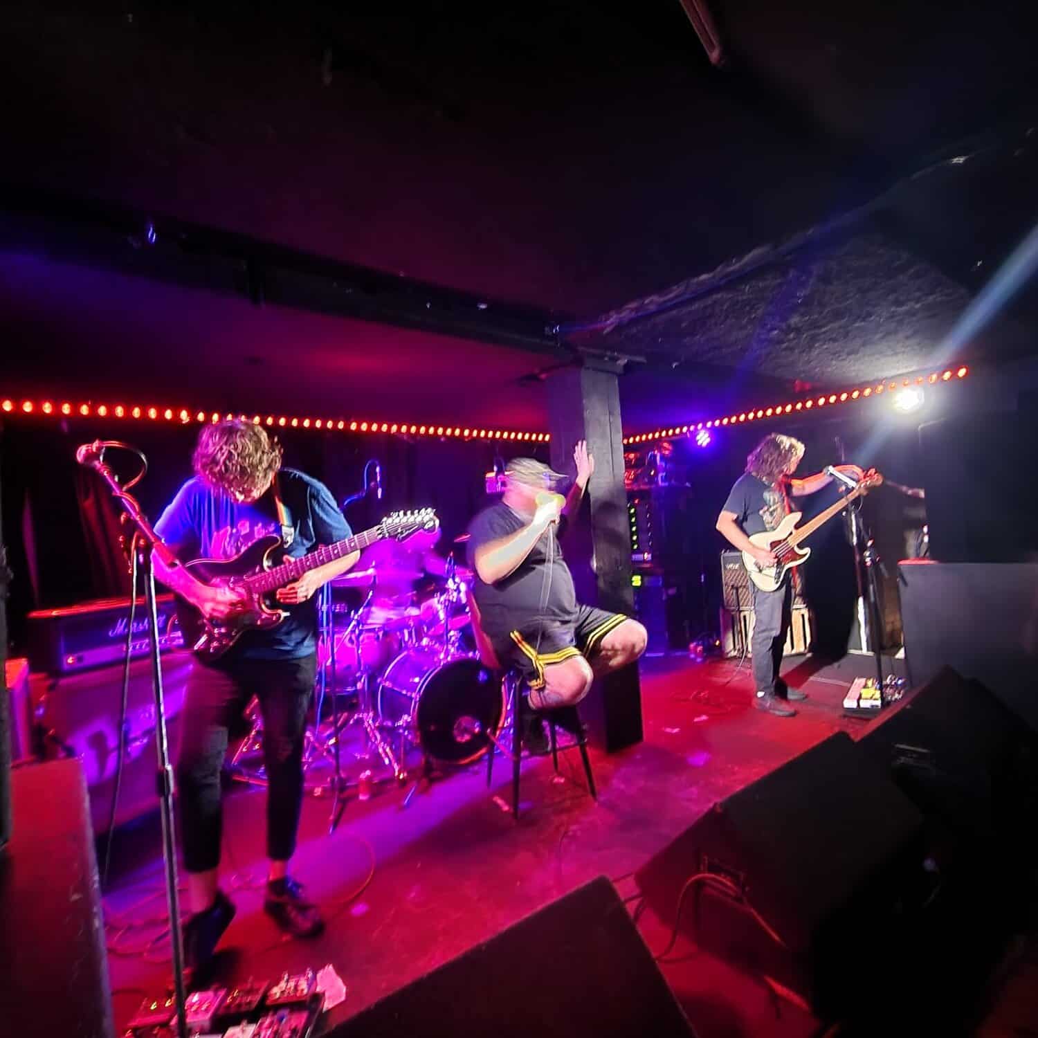 Vocalist Drew Gardner is running up and down the front of the dancefloor as his compadres slam out a heavy opening salvo of noise. There is no let-up, no pause (except to swig from a beer can) A chair becomes a stage prop, and he asks if anyone is working tomorrow, to introduce Weekday Warrior from their 2022 album High Spirits/Low Life. The microphone falls in the melee and he rides the monitor like a hog, it’s a theatrical show tonight it seems. Musically, Totally Unicorn are possessed by a visceral level of punk grittiness and hardcore, and you can’t help but want to be an extra in a Totally Unicorn performance piece. A Camp Low Hum won’t know what hit them!