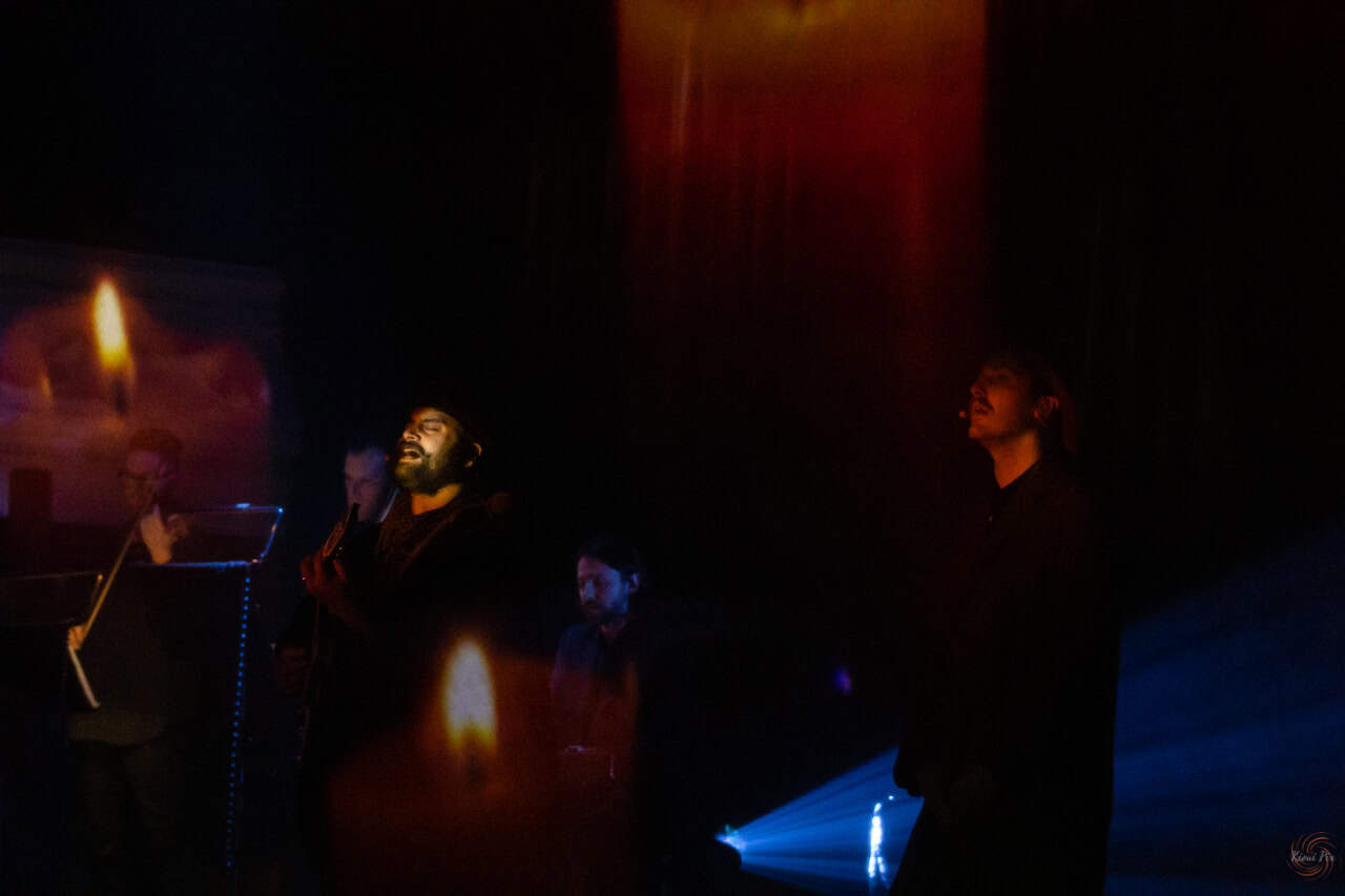 Opening song Sleep is folk with a generous amount of melodic pop. Feel the darkness start descending/ How long can we stay apart? Two violins carry it along. Candles are lit on stage ceremoniously, and appear as holograms in front of the performers.