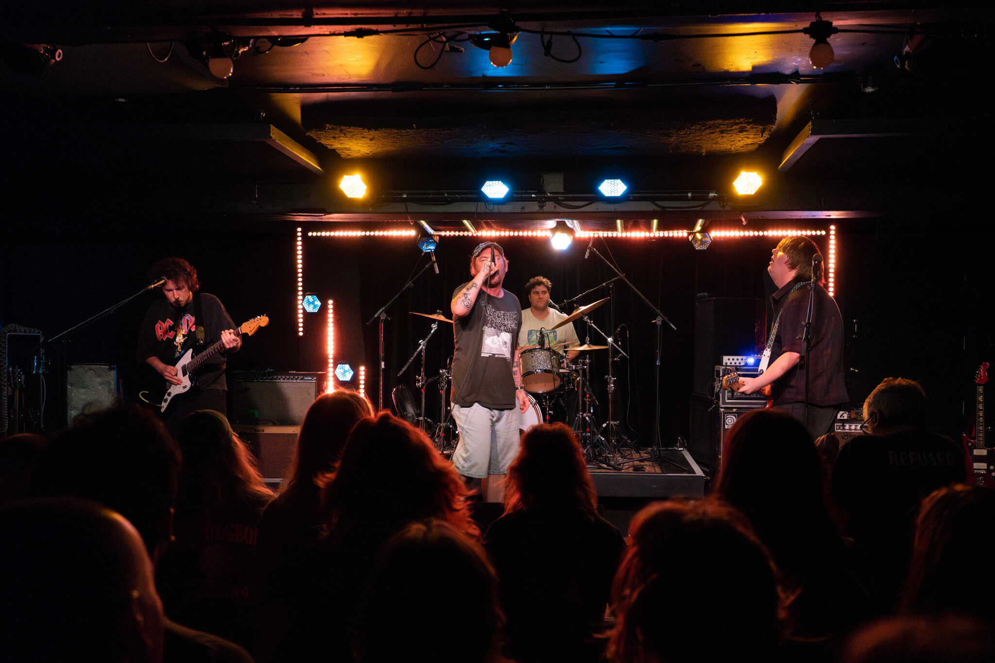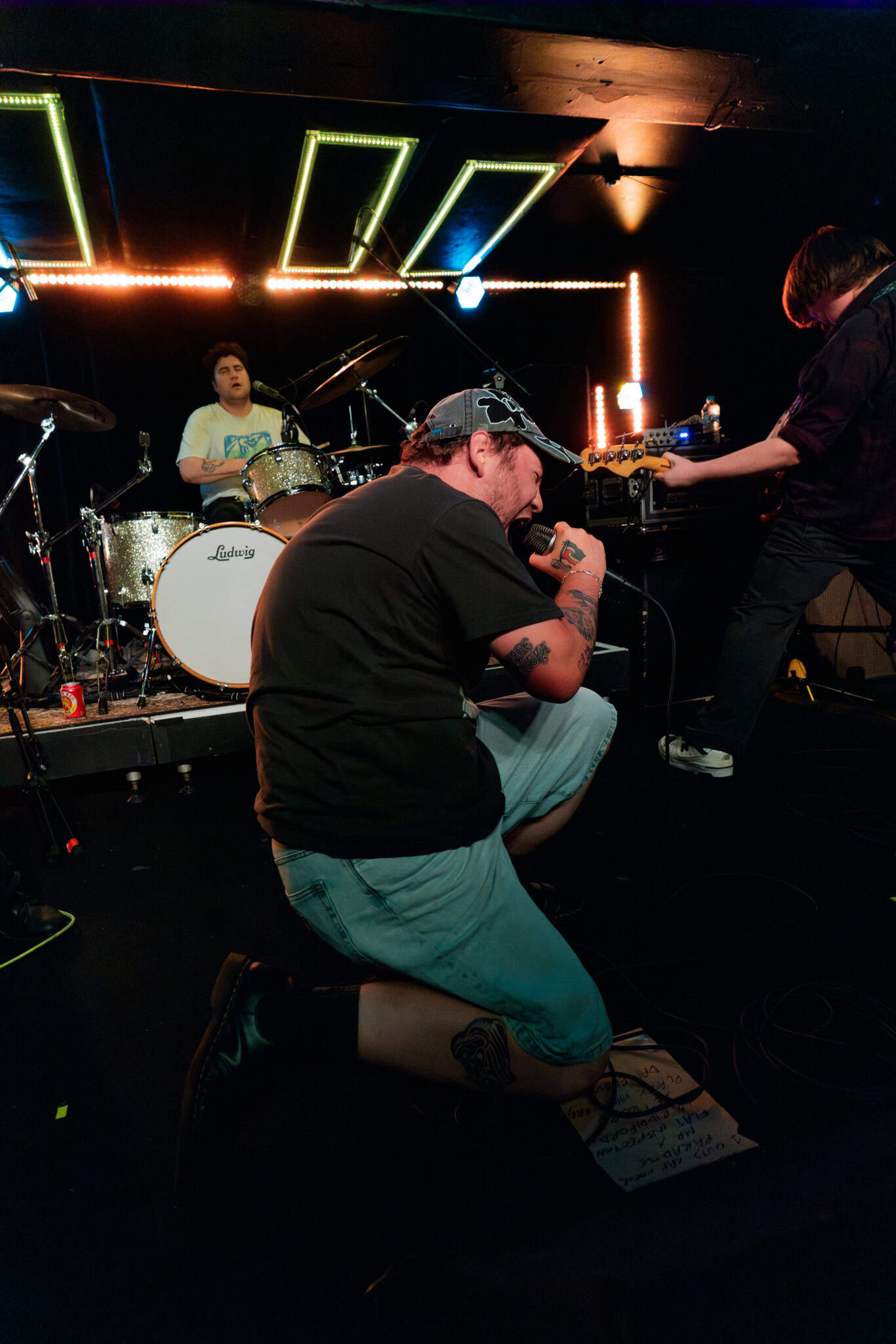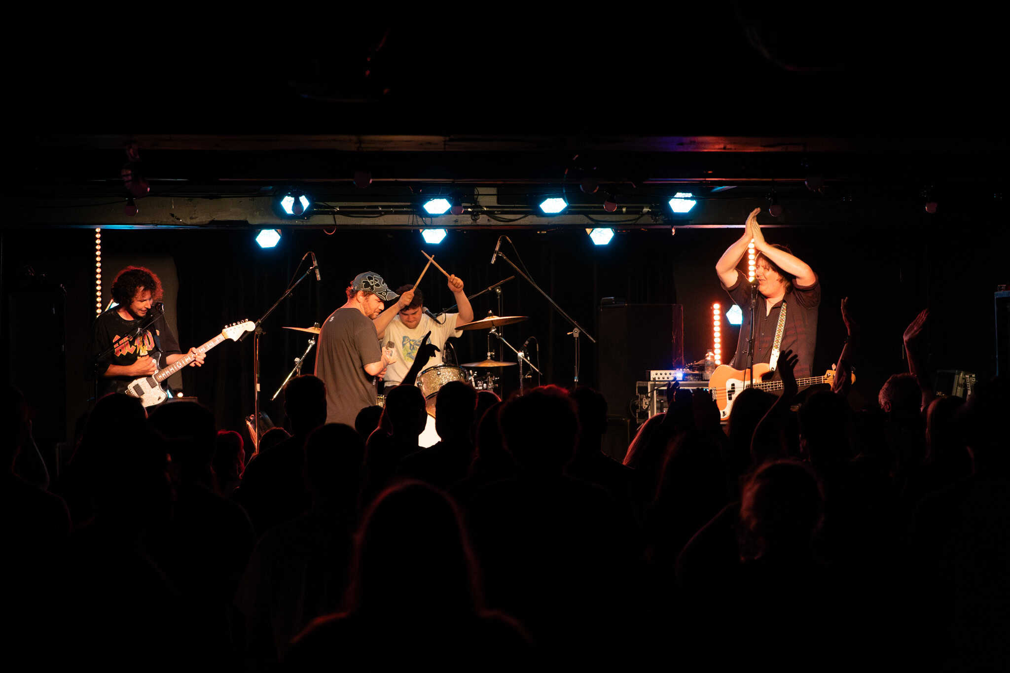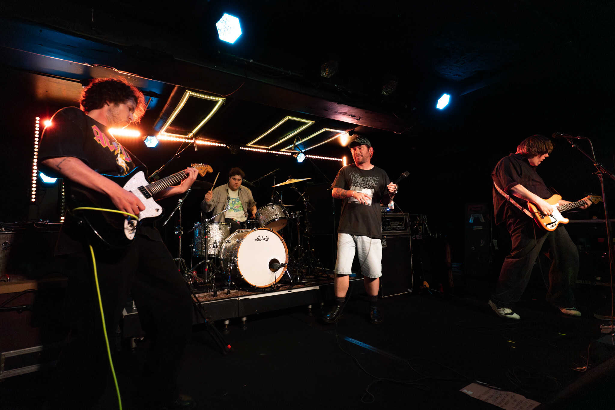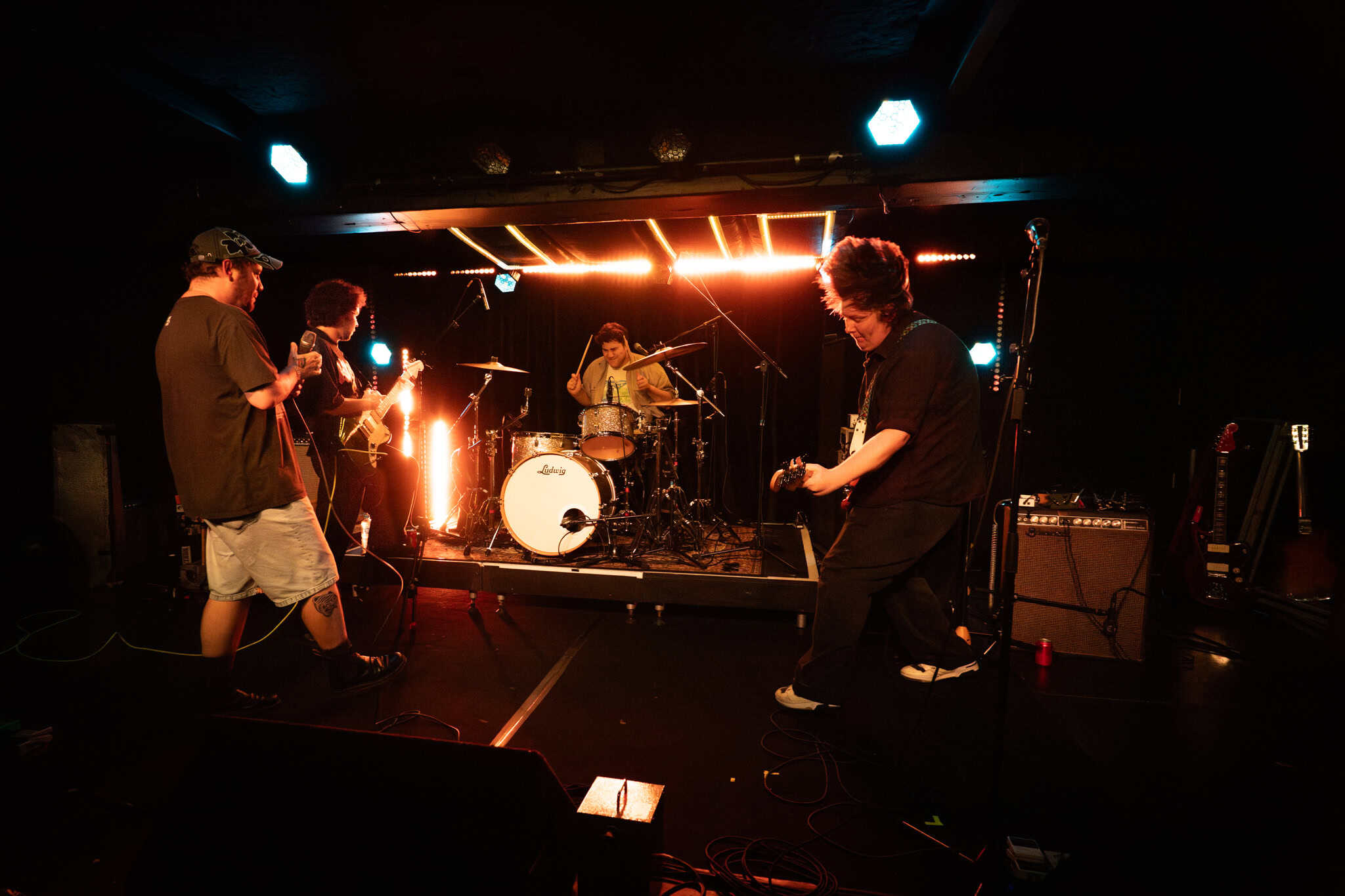 There’s a little more though, as the night proceeds, the musicians onstage exhibit shifts into complex melodies, harmonies, in particular Ward dropping hypnotic bass grooves, and guitarists Mikey and Hoff overlaying lead sometimes reminiscent of Gregg Ginn.
