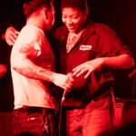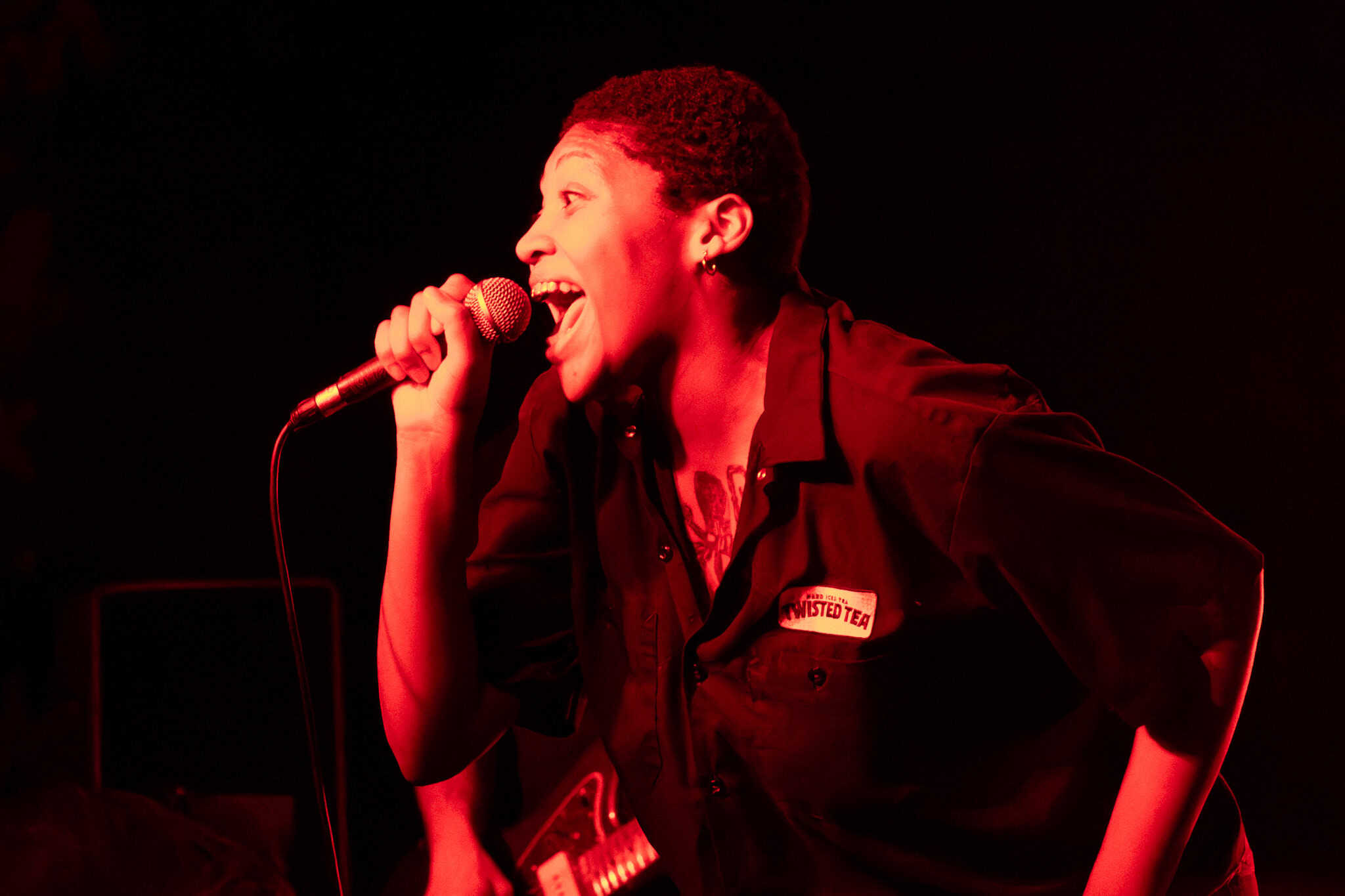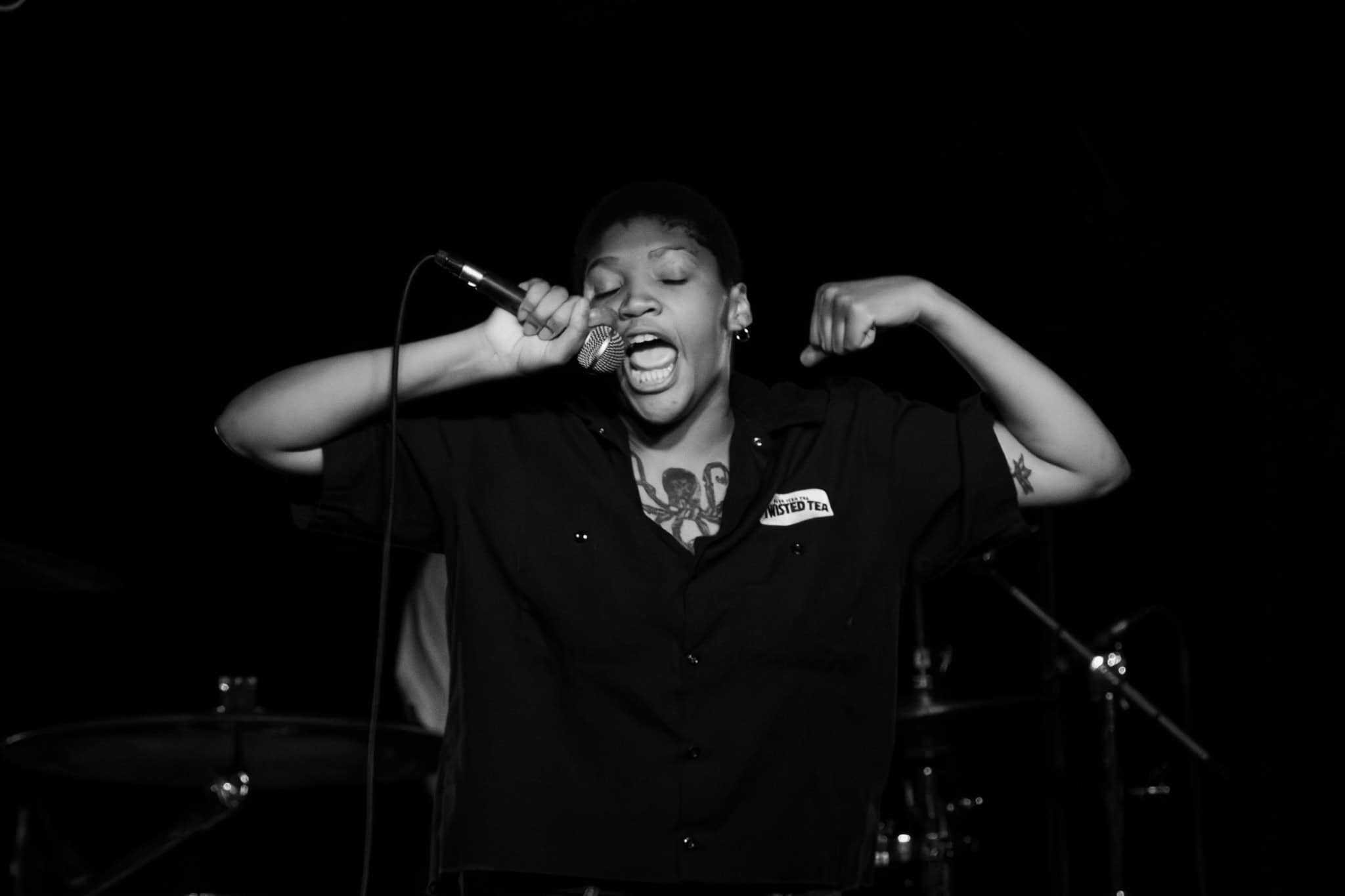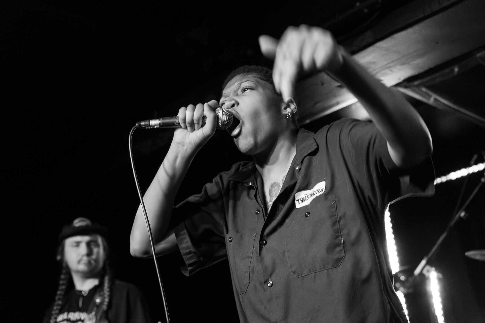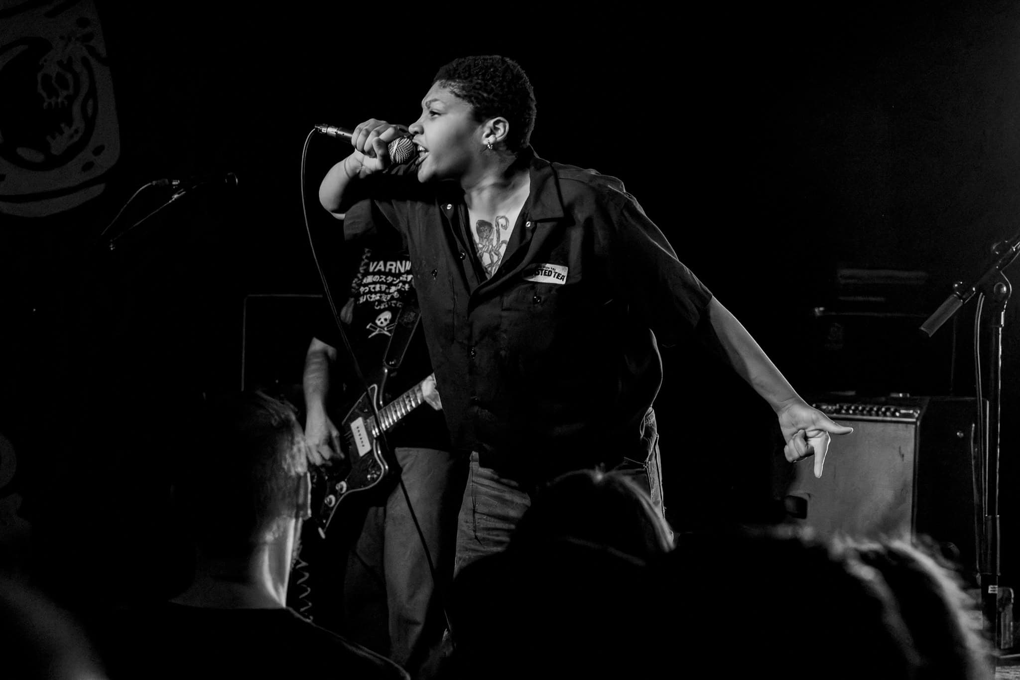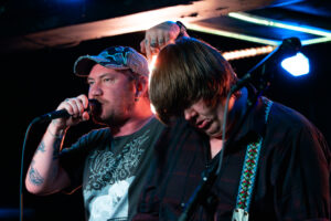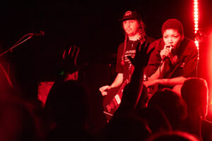 There’s energy in the whare, as the crowd cheers and gathers when the members of Upchuck arrive onstage. The room is about half full, but the enthusiasm is greater. KT launches the band with a hardcore pose, and the front-folk go manic, by the third song KT has been in the crowd. Meanwhile the other members of the band – guitarists Michael “Mikey” Durham & Hoff, bassist Ausar Ward, and drummer Chris Salado keep the volume constant as Upchuck throws solid Americana punk riffs, beats and intensity into the room.