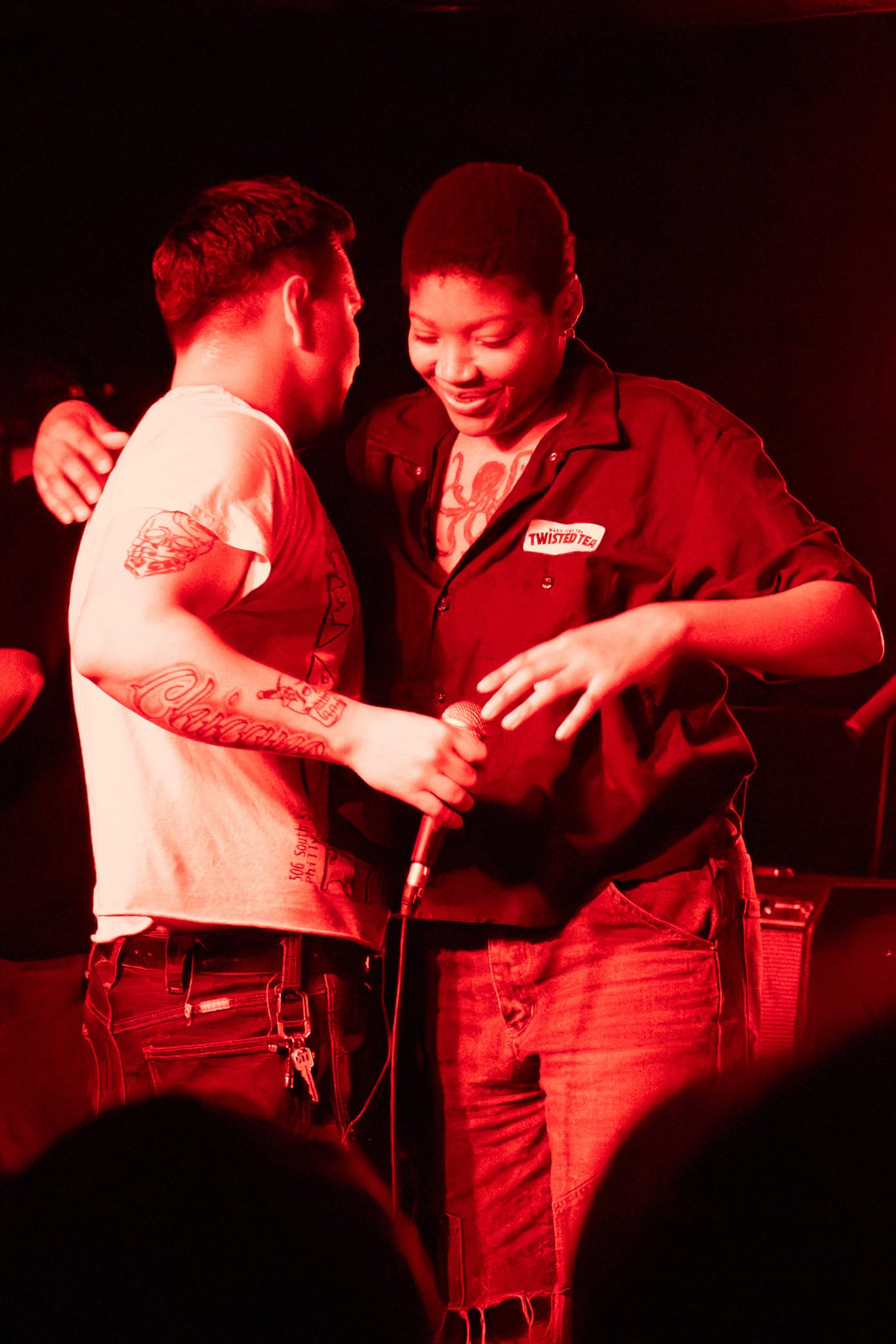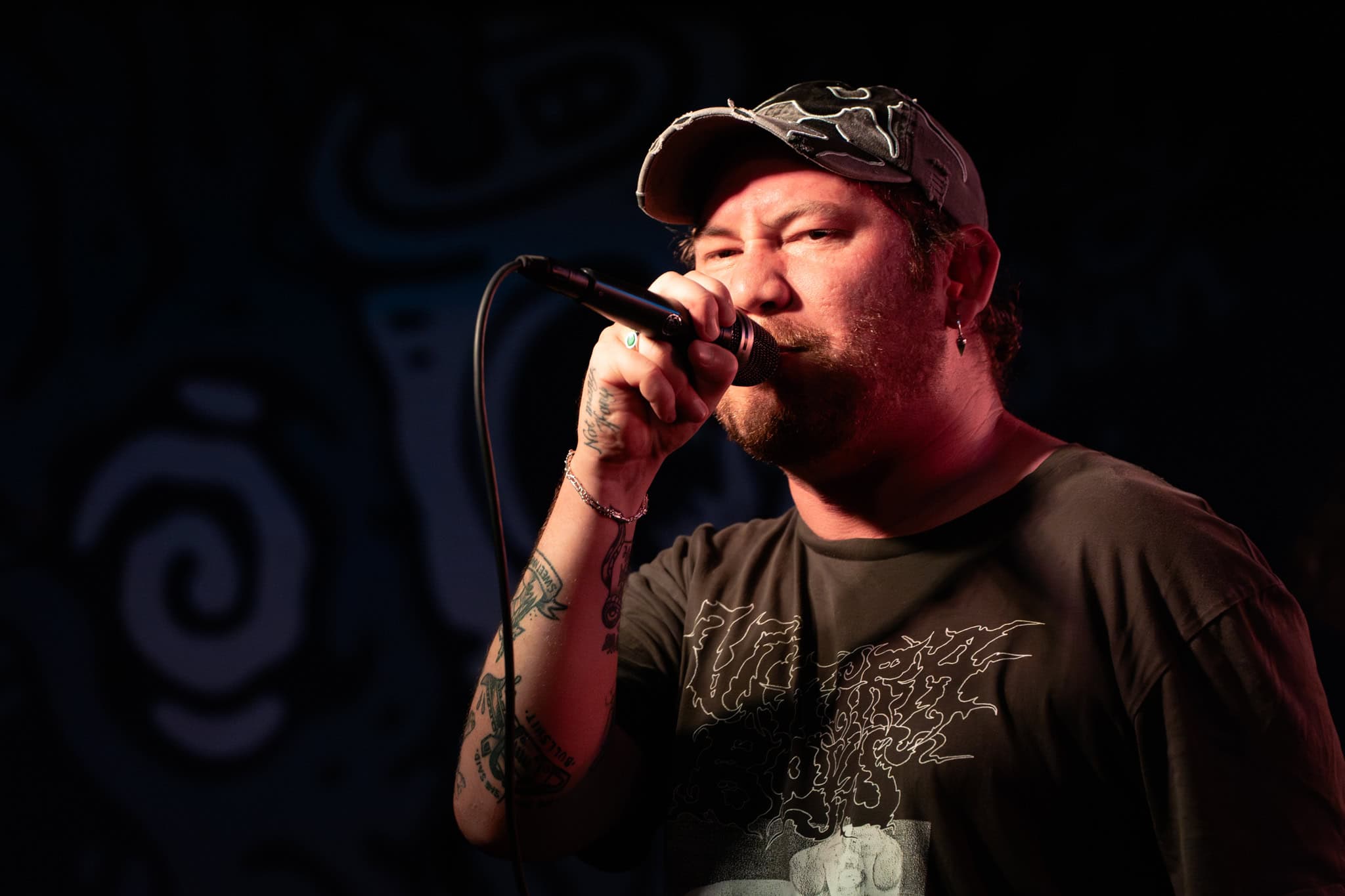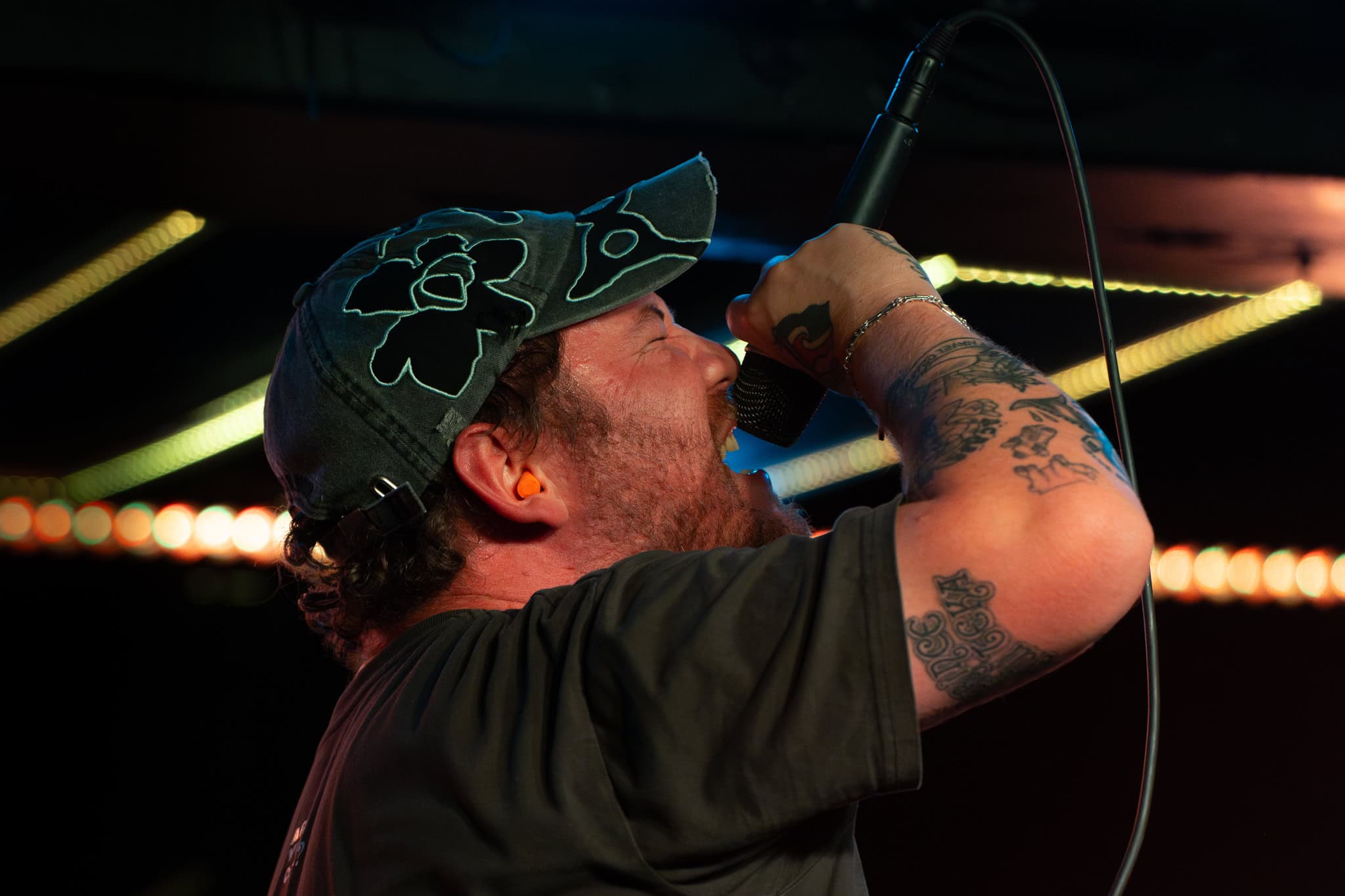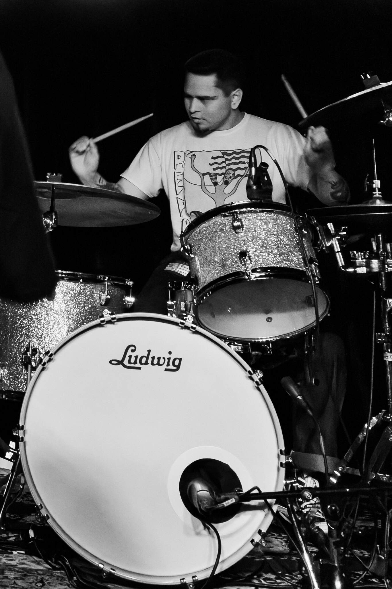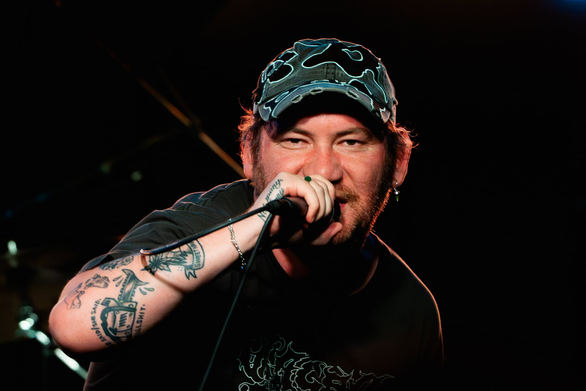 There’s energy in the whare, as the crowd cheers and gathers when the members of Upchuck arrive onstage. The room is about half full, but the enthusiasm is greater. KT launches the band with a hardcore pose, and the front-folk go manic, by the third song KT has been in the crowd. Meanwhile the other members of the band – guitarists Michael “Mikey” Durham & Hoff, bassist Ausar Ward, and drummer Chris Salado keep the volume constant as Upchuck throws solid Americana punk riffs, beats and intensity into the room.