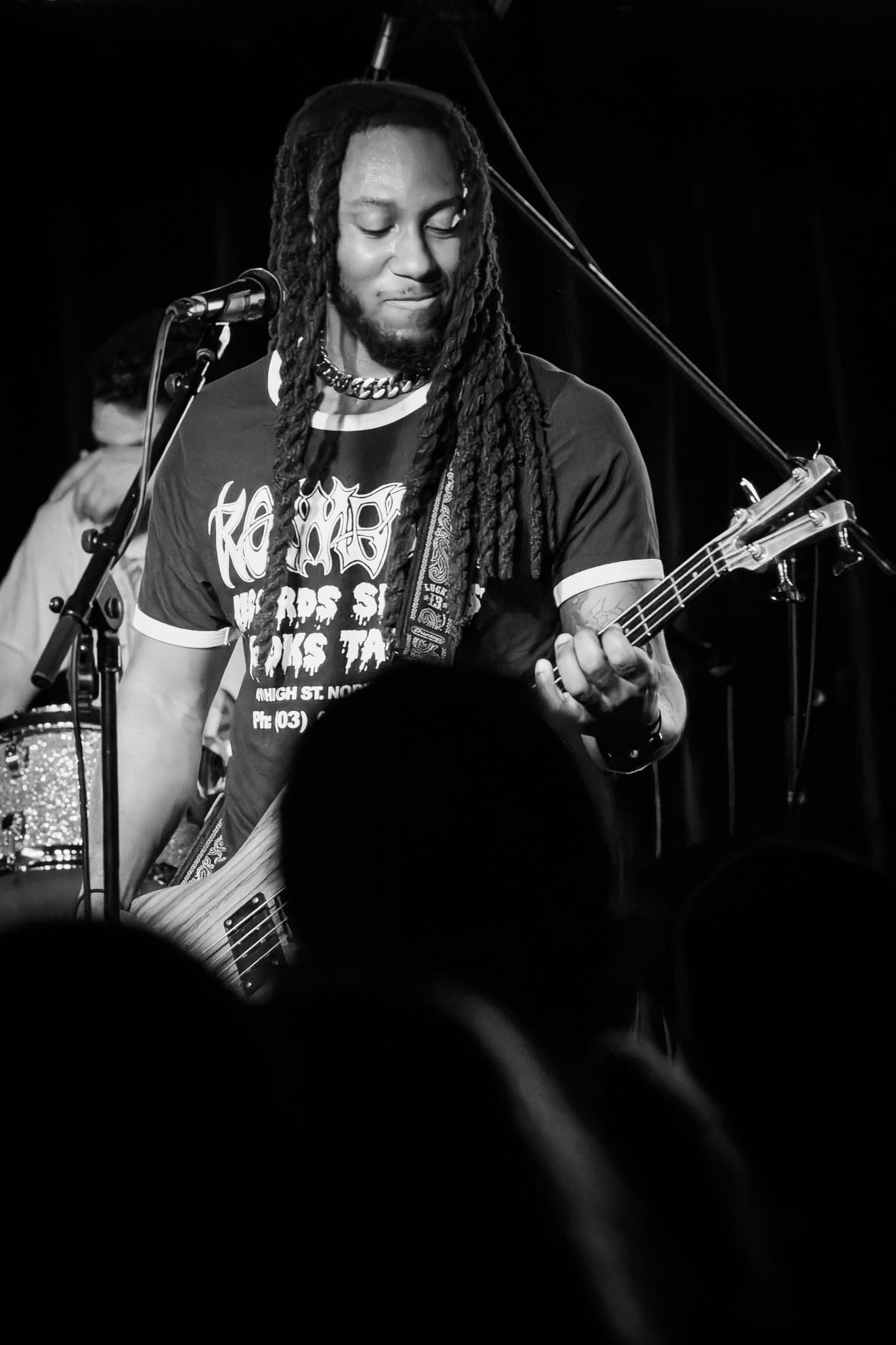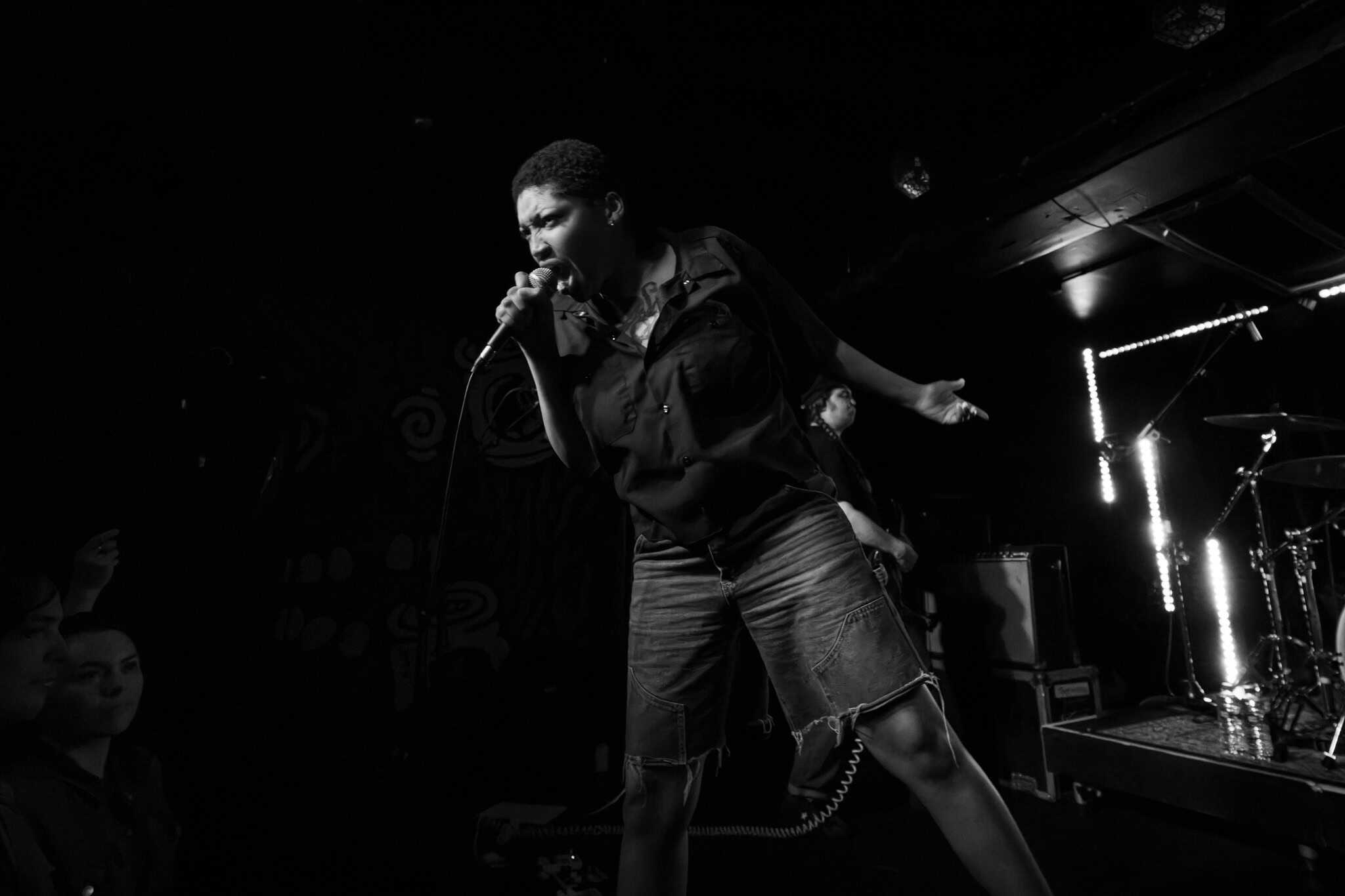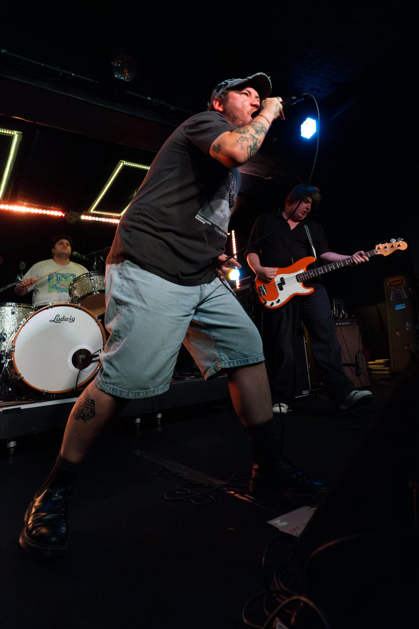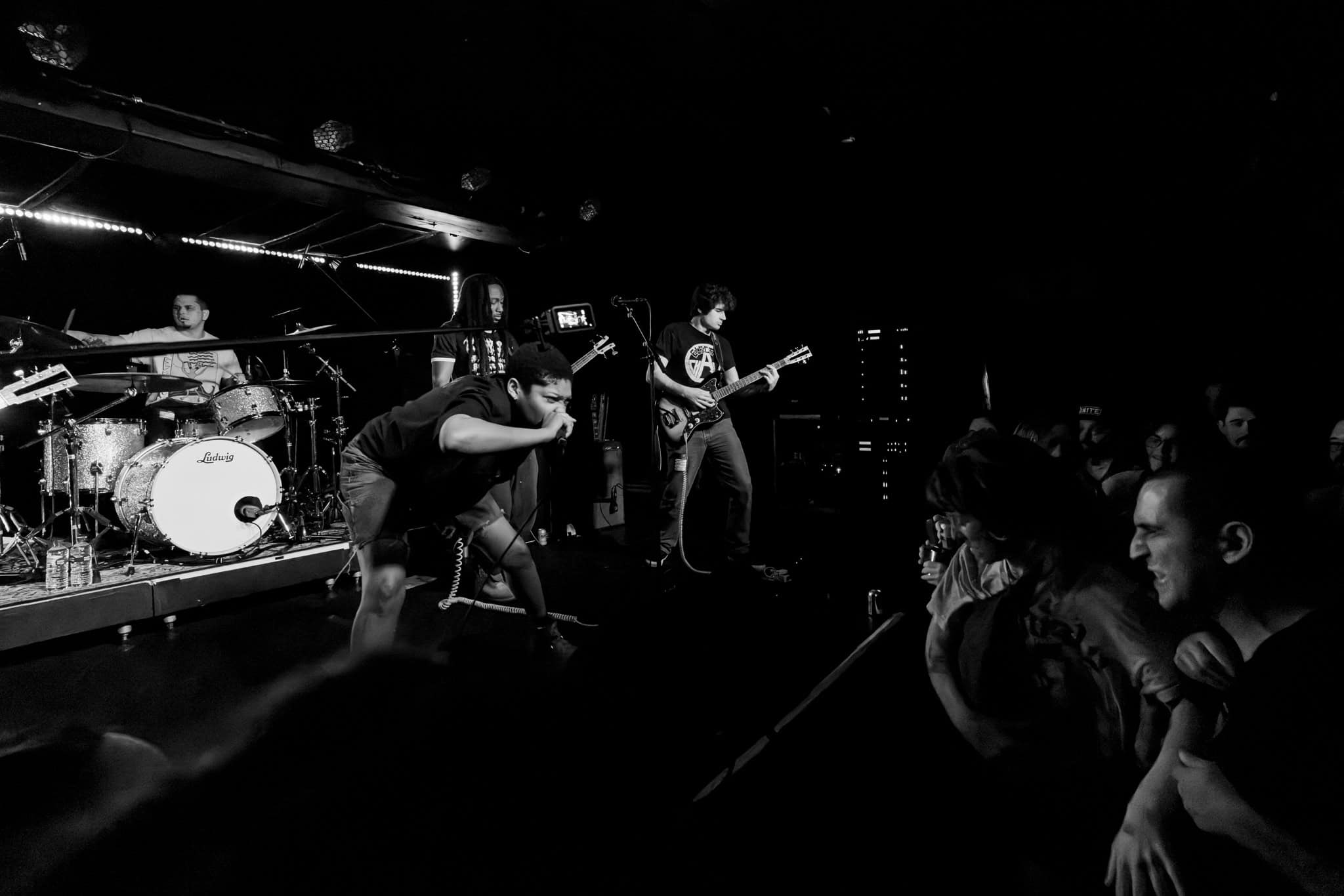 Mid-set, Salado and Mikey swap tools, as KT retires off stage, and we get a look in on another side of the band, as Salado also joins the manic crowd on the dance floor, though raised by the people, his boots never touch the ground. They deliver punk with more dirge, more dirtier, a little darker.