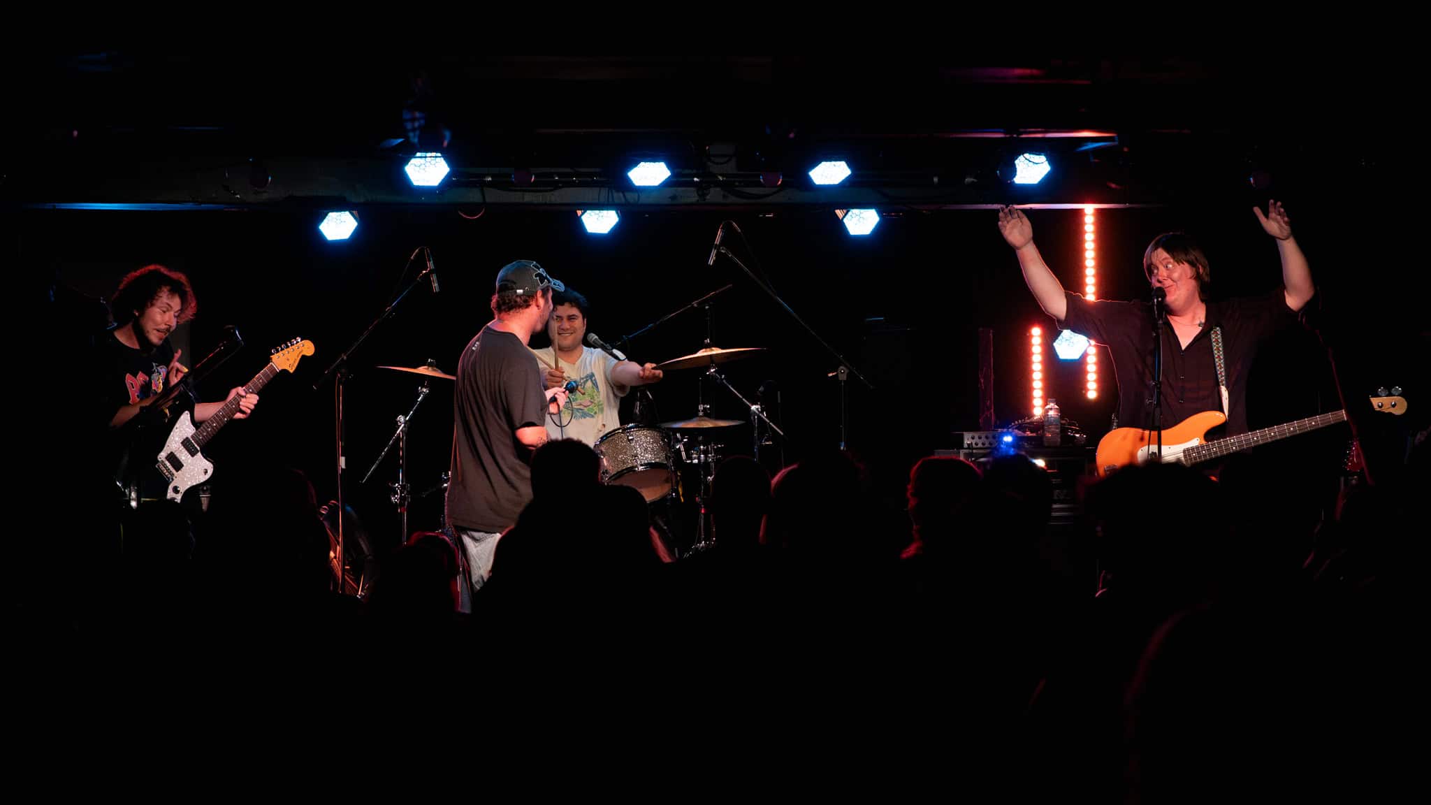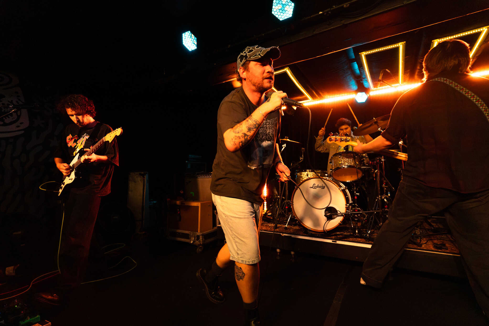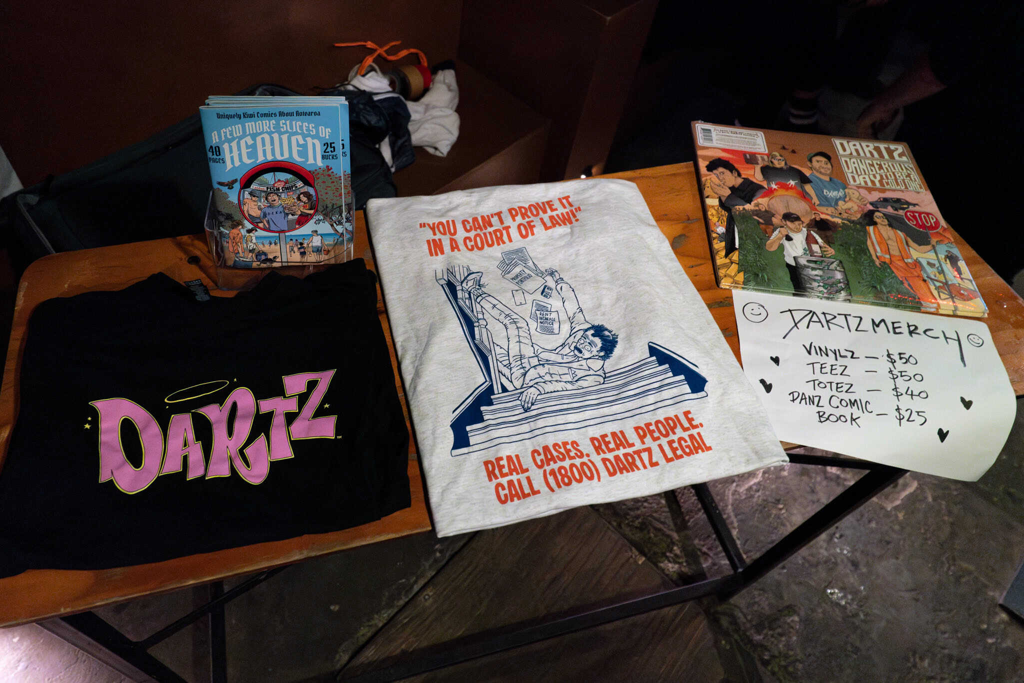 DARTZ is a punk rock band from Poneke. 8.33pm, as the room fills, bodies beckoned by sound checking and tuning, bassist Clark Mathews is not replete with the meekness, so with a few jolly “haere mai mate”, he encourages all to come hither, towards the front.