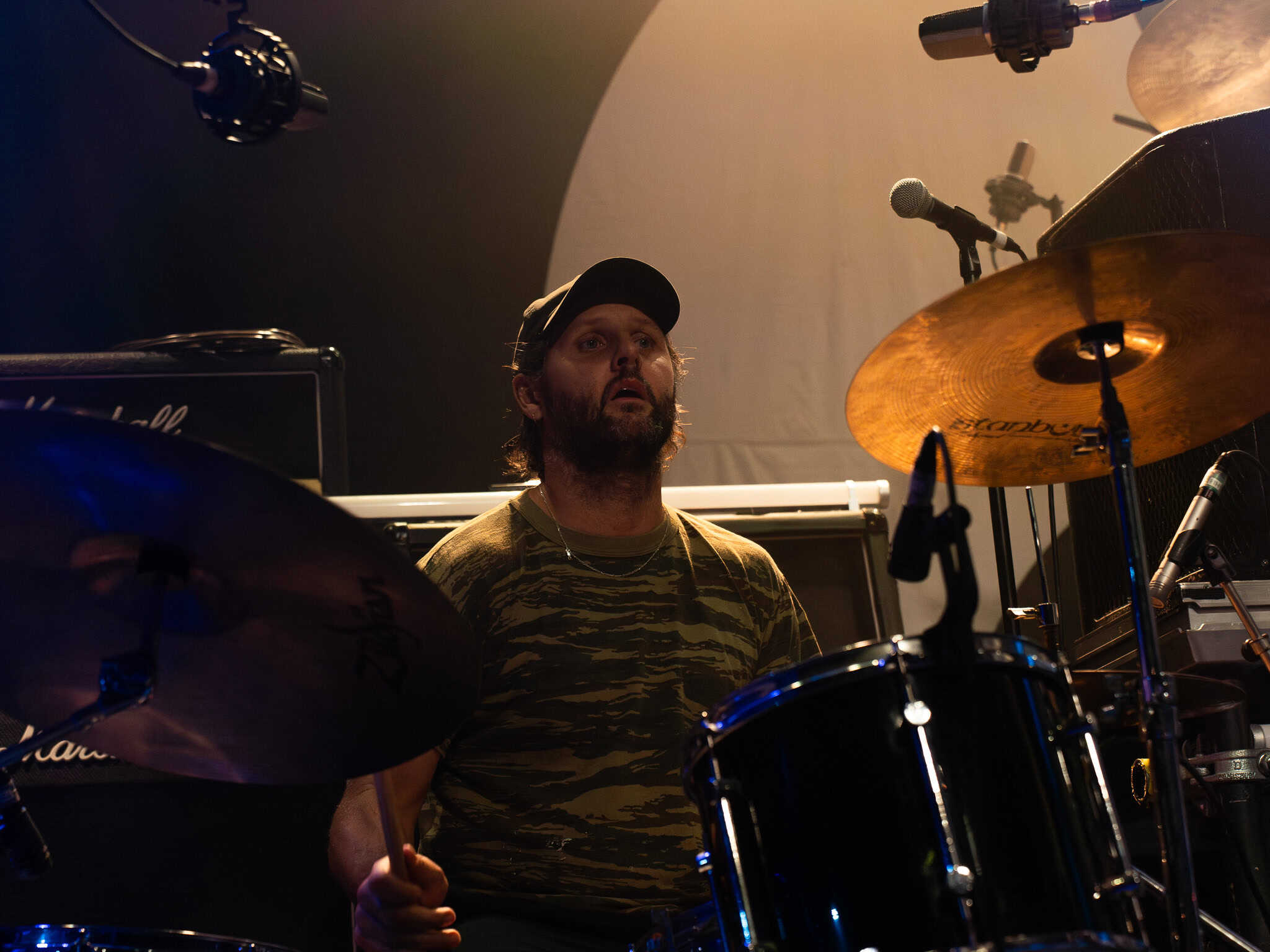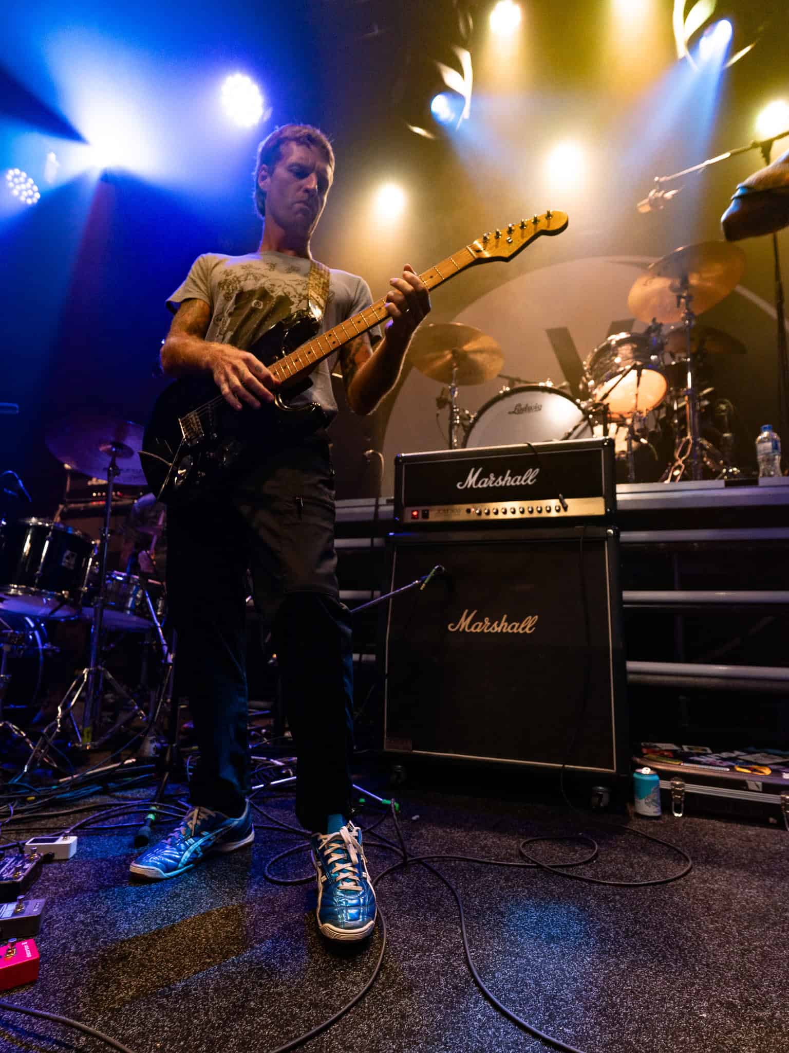 Toward the end, as the rhythm section kept the groove ongoing, as Murphy continued with his command of the ship, beer-spouting, adlibbing and ad-grooving. There is a gentler moment as Medicine for Horses features, it has a beauty, and shows off the wide skillset of the band, and Murphy’s ability to almost croon (it’s only interrupted where I am by idiots going yeah nah in a trockular aussie manner). Sports returns the room to the sweaty teeming chaos of earlier times, meanwhile last off the block, Research Chemicals (from 2010’s Consistency of Energy) receives the jamming experience, it’s straight ahead punkish driven manner is enhanced by a bongos and sax interpart lead by Carls and Jungqvist, over the addictive guitar, bass and drums driven beat.