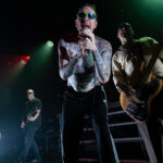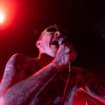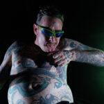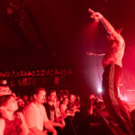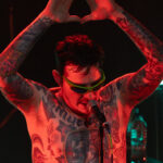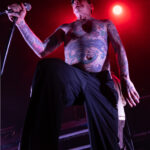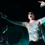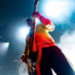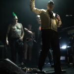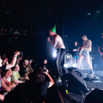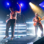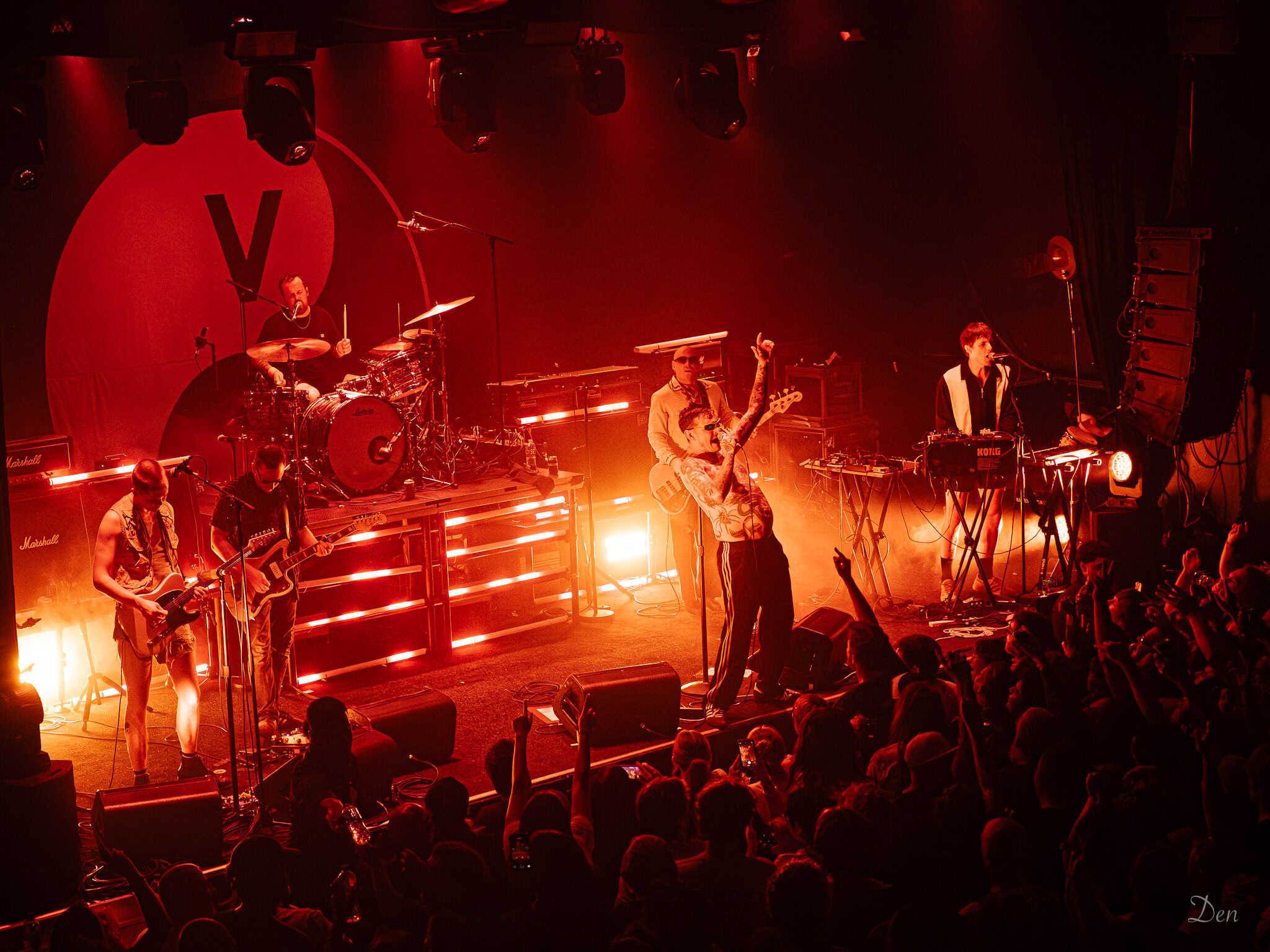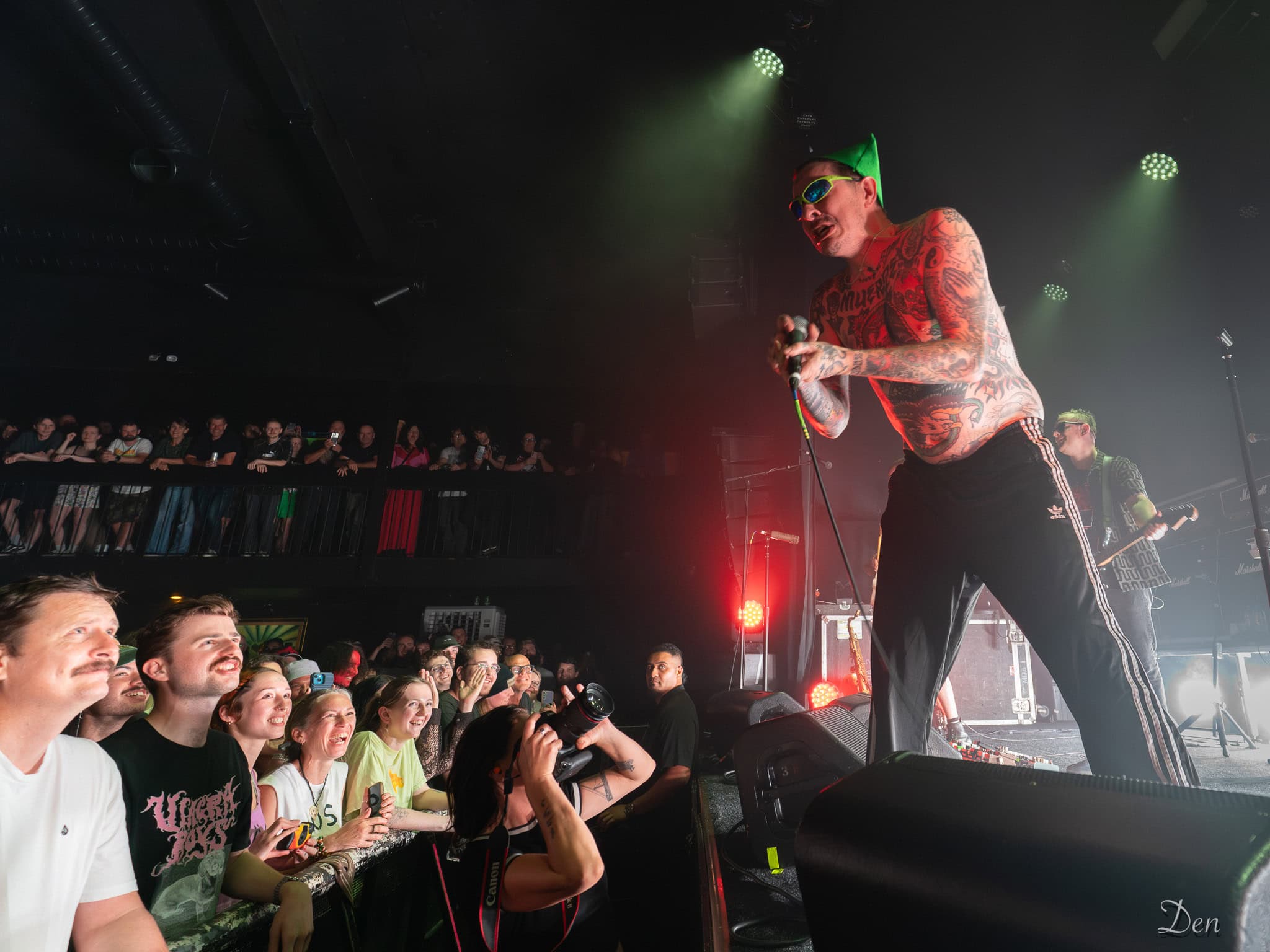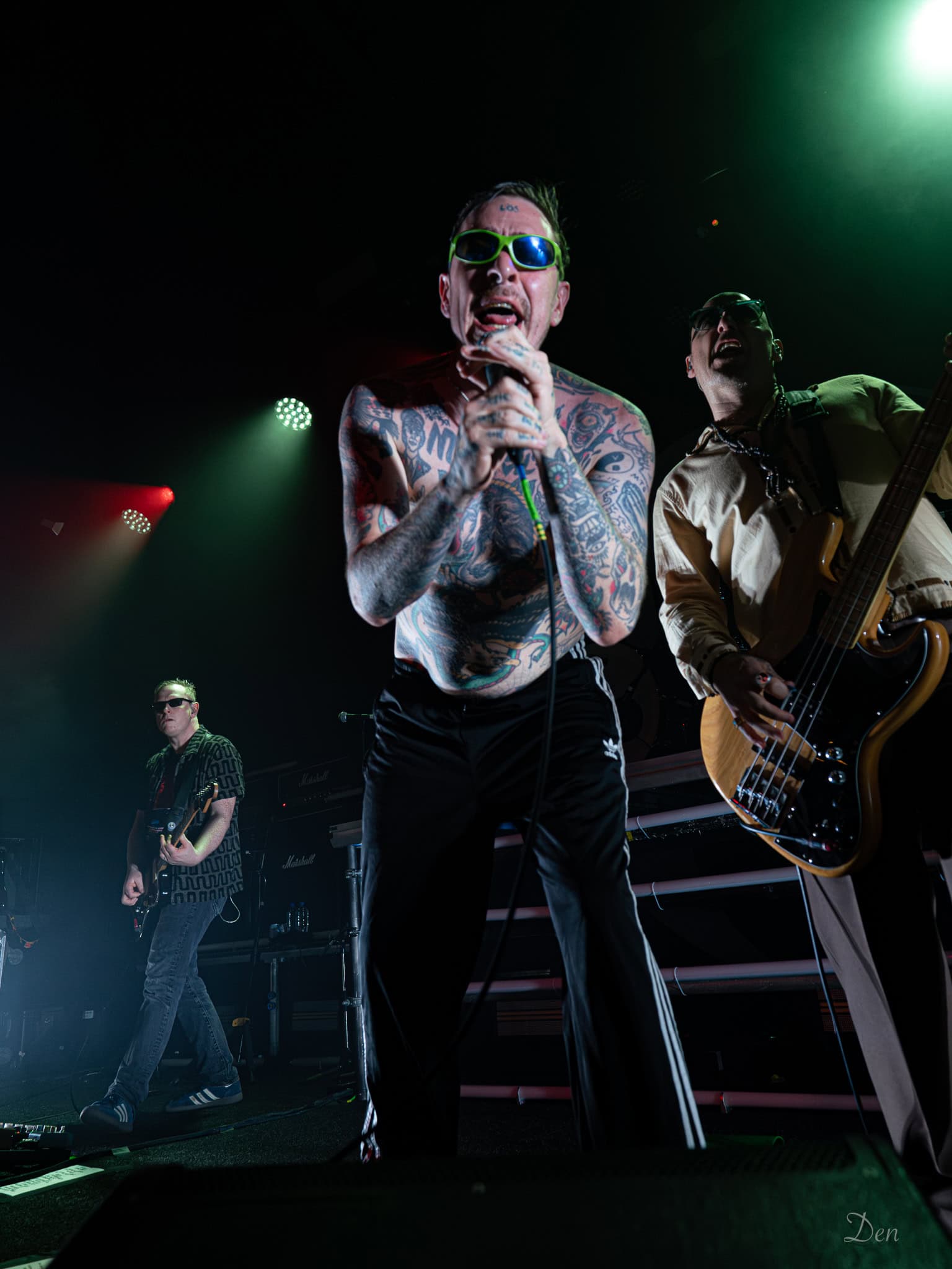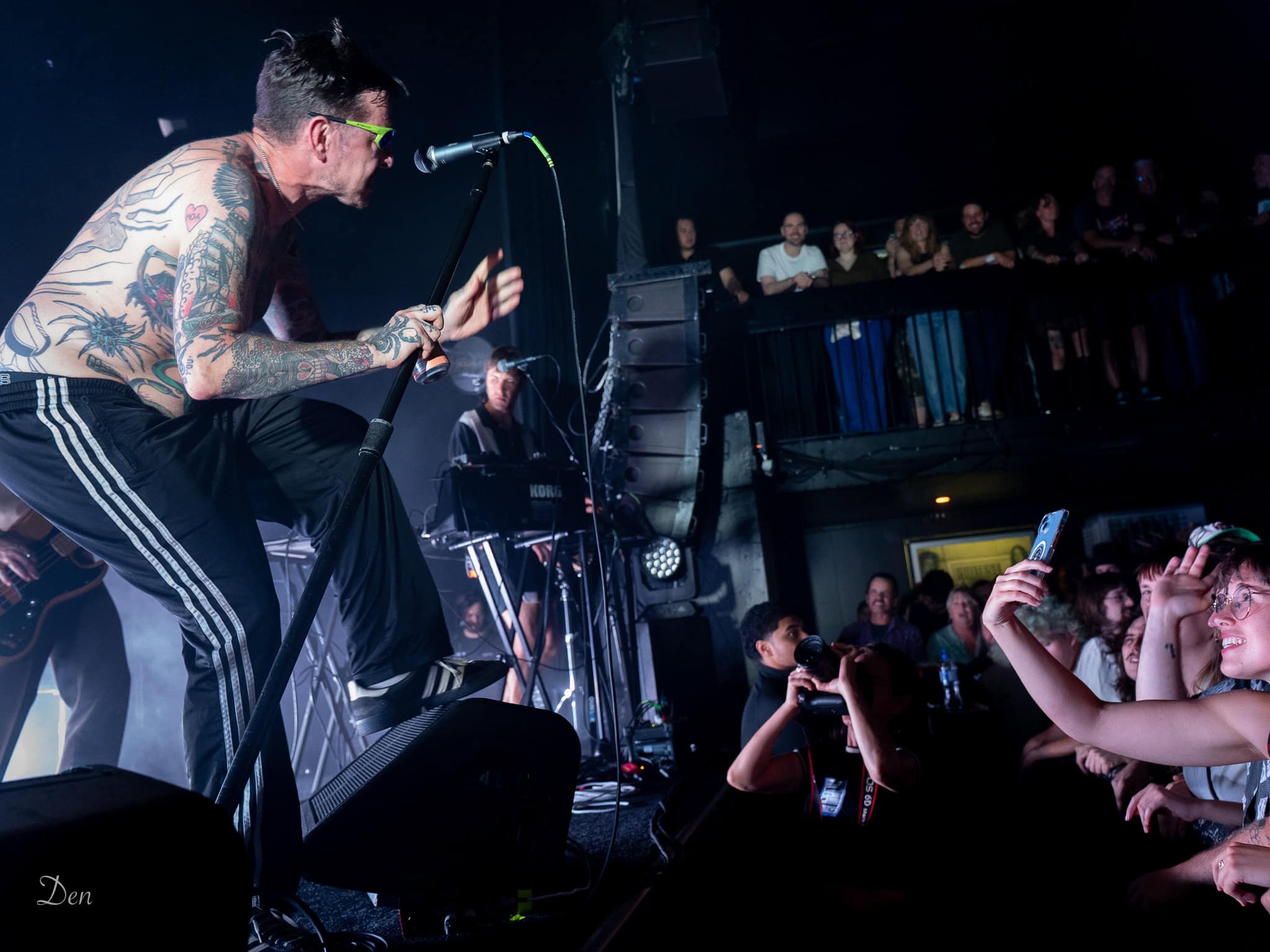 Pyramid of Health is followed by Murphy sharing his worldview (one that his band members seem to endorse) Fans of Viagra Boys will know the band cut no slack to adherents of authoritarianism and bigotry, as Murphy and mates call/chant for a free, Gaza, Ukraine, Iran and liberation of a third-world America. It’s received well. Murphy, politely, suggests dissenters quietly exit the room. Troglodyte (from 2022 Cave World) follows, perhaps reinforcing the group’s stance, with its wawa guitar intro and quirky beat, it is being driven by Elias Jungqvist as he manipulates his keyboards (and bongos), escalating and adding electronic richness, keeping the crowd enraptured. Murphy forever the prankster threatens to sing only sad songs for the rest of the night, an improv, adlib song with Jungqvist joining in, amused, with its narrative of hooking up, performance issues, and a morning dinner date. He truly loves to fuck with people.