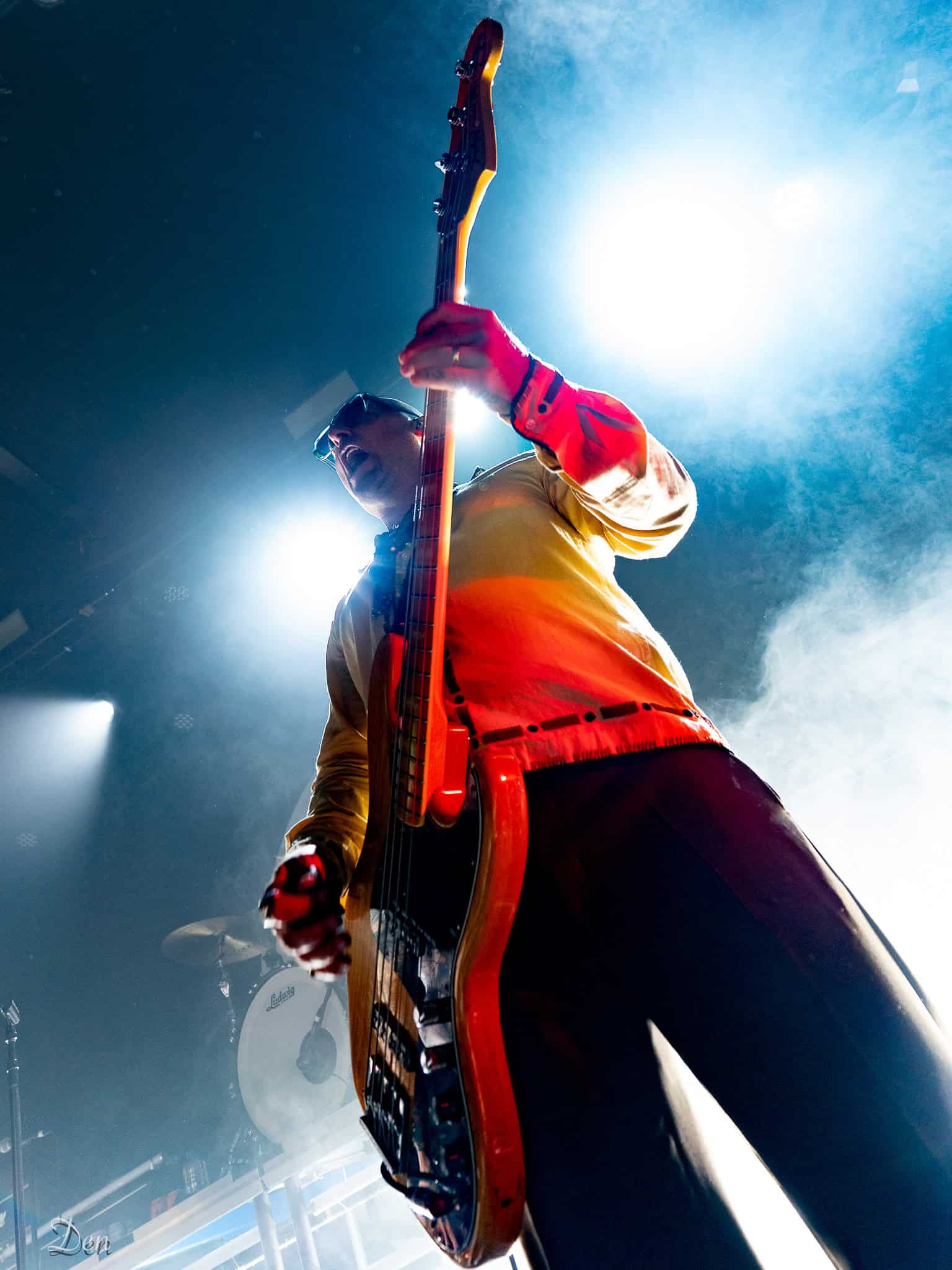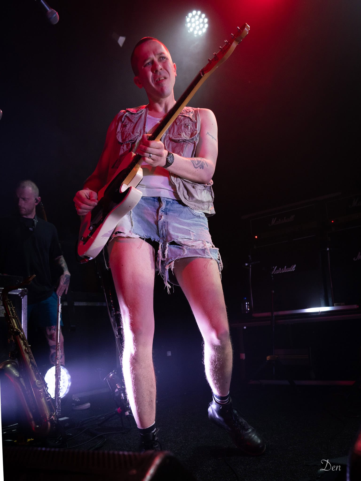 Murphy is a jumble of tummler and provocateur tonight, he later announces he’s been in New Zealand for a week already, visiting and experiencing, he’s generous about his interactions with the locals. Already, the bands performance is impressive, Henrik “Benke” Höckert bass playing is a sonic driver of the groove already dominating the room, whilst the Saxophone, flute (and later bongos) add lavishness to the songs, the shorty shorts that Oskar Carls (saxophone, flute & guitar) is sporting, are a sight…, as he sways to the groove.