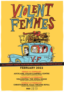 “Violent Femmes Fans! We are all dressed up and nowhere to go. Half the band are in USA and the other half are in Australia. We can’t get together with Covid restrictions in both places. So we’re postponing our long-awaited New Zealand tour to February 2022. Thanks for your patience and be assured we want to see all of you and play for you when the coast is clear. In the meantime stay safe!” – Brian Ritchie / Violent Femmes