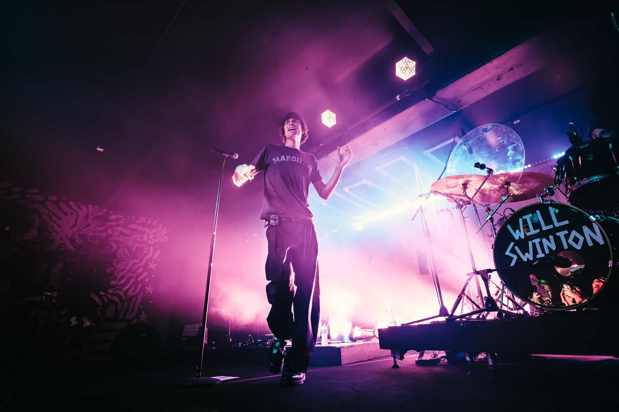By the time Will Swinton and his band took the stage (10pm) the crowd had swelled to capacity and screams went up as they took the stage, the lean, lanky Kiwi staring with his 2024 single, Fall Apart.