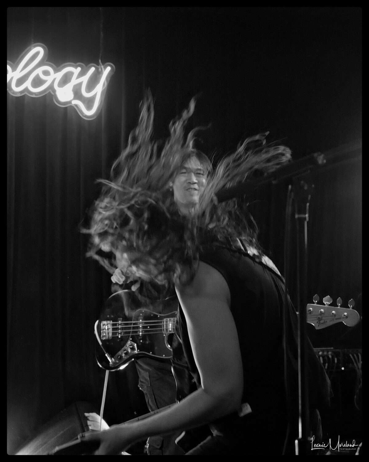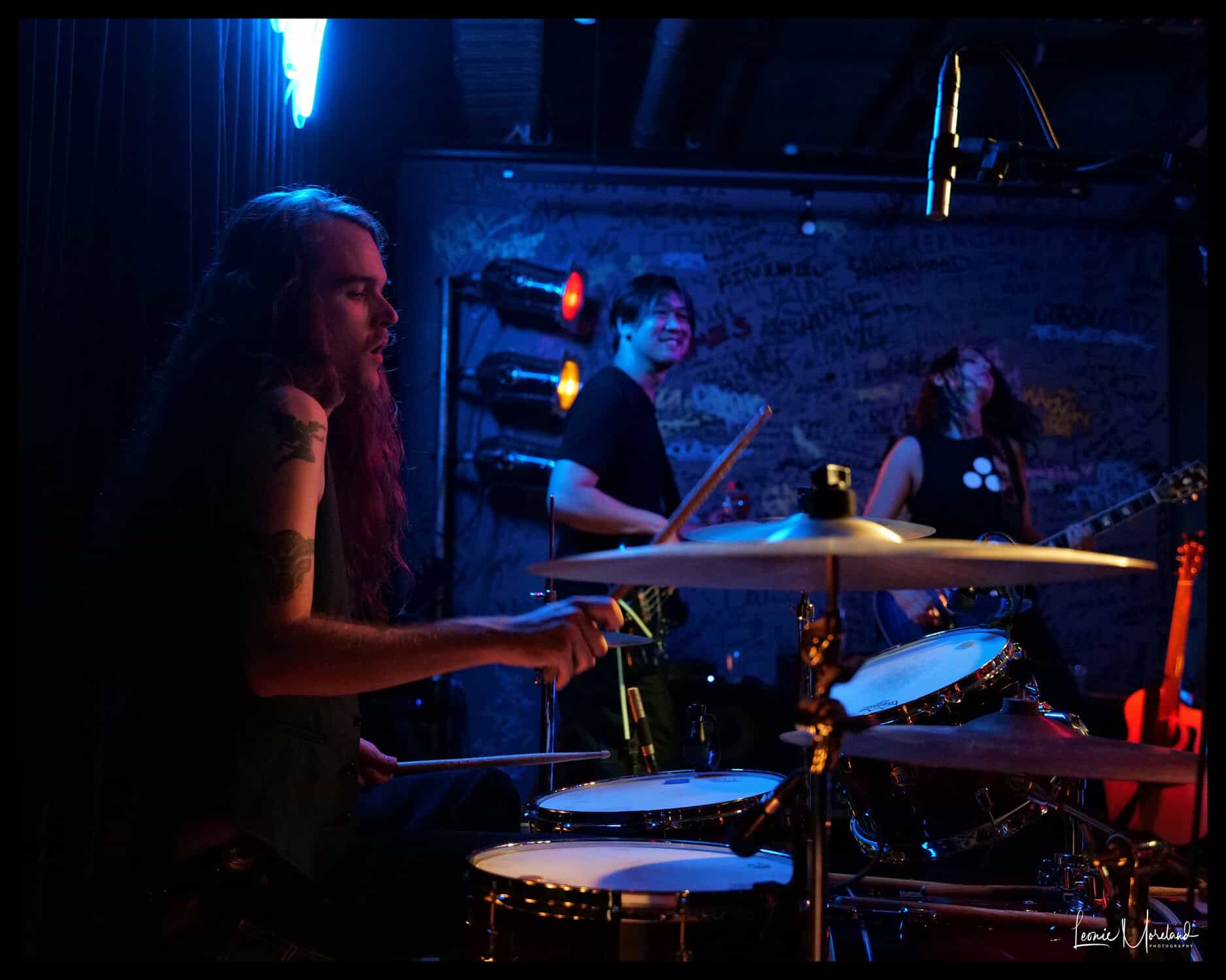 Rest of the band. Chops McWaters on drums, he has a Ringo-style appeal to certain loud members of the crowd. Cam Taylor keyboards, Alex Kimono bass and Cherisha Heart guitar. They sound like Captain Beefheart player names. Heart is McCollum’s younger sister.