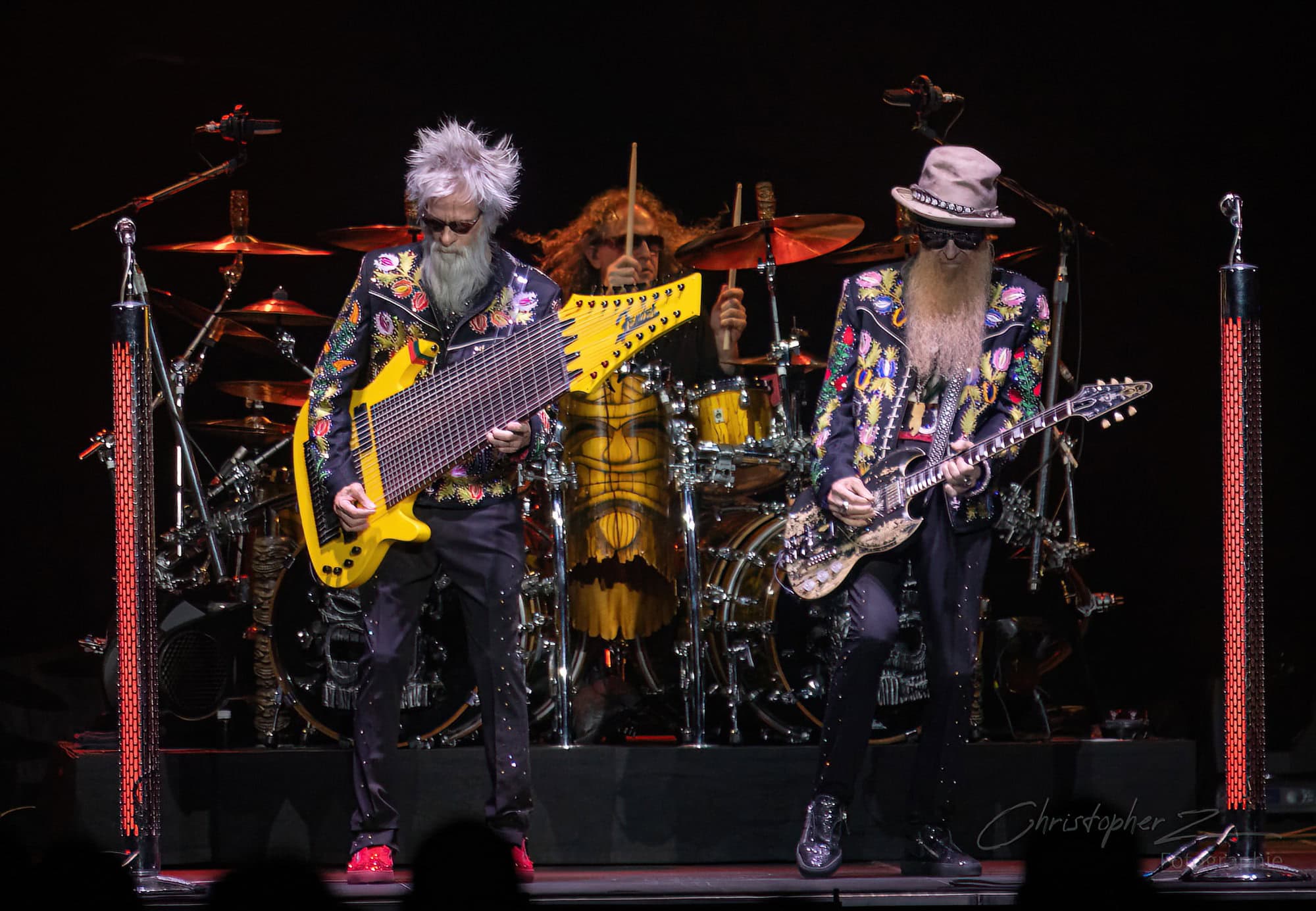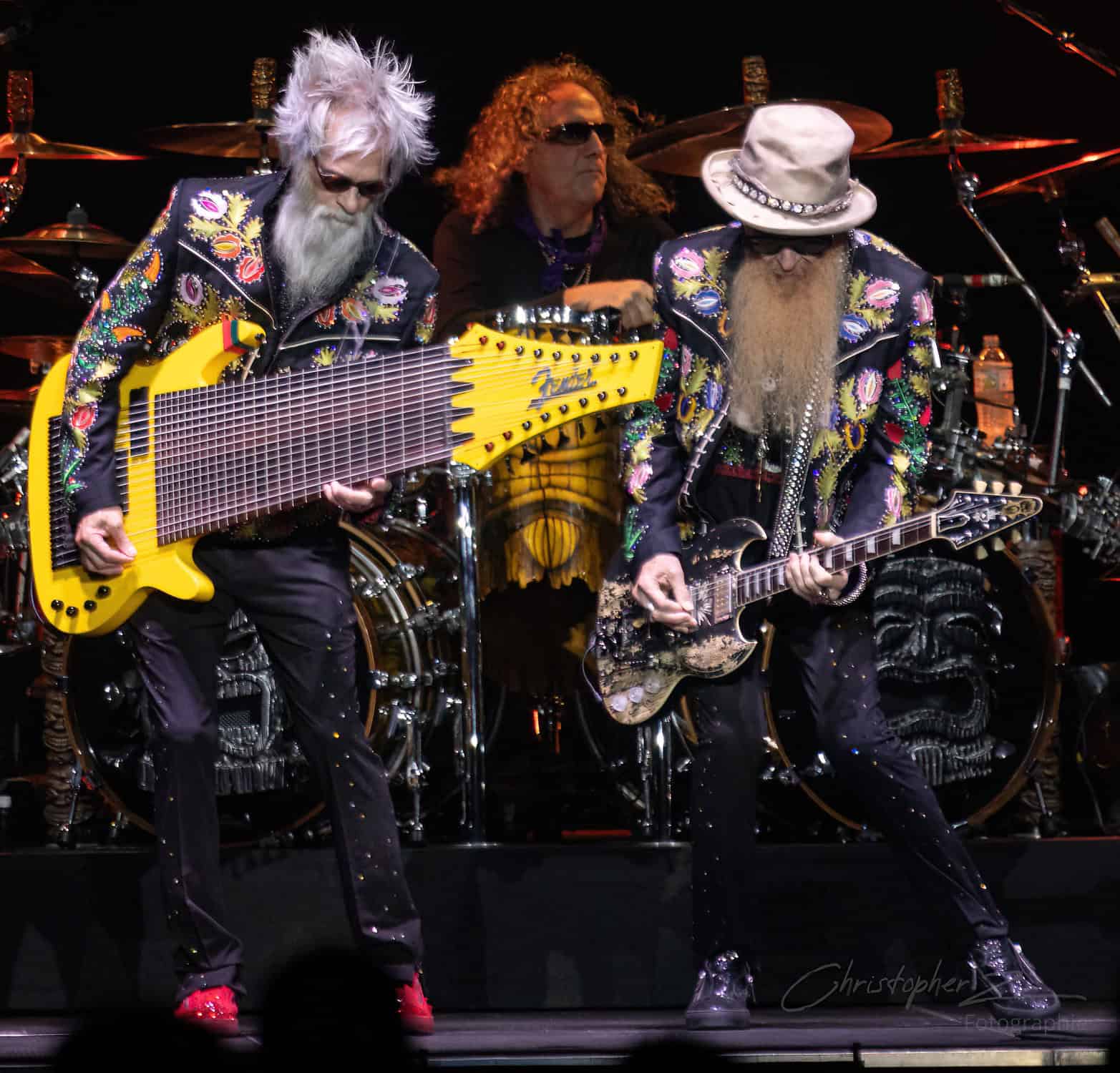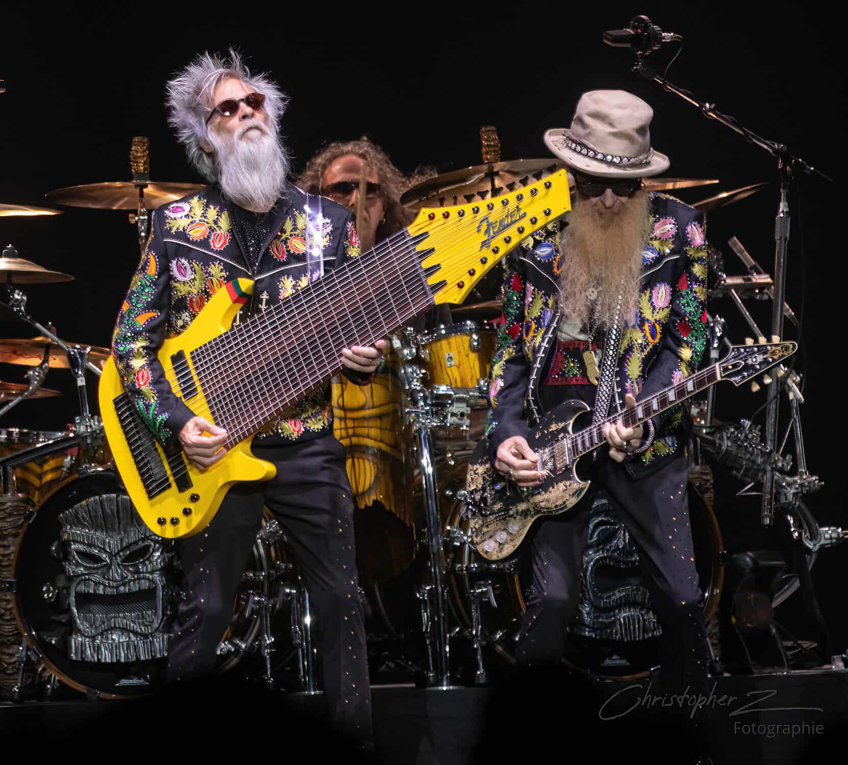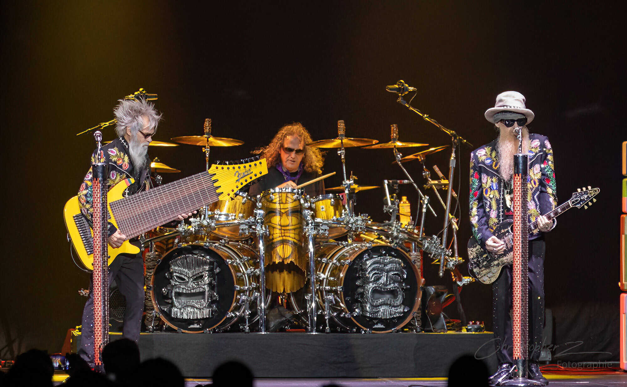 Gibbons’ voice was gravelly and sharp, that distinct ZZ Top growl still intact and loaded with swagger. Elwood Francis – wielding that absurd yellow 17-string mutant guitar at one point – looked like a Southern-fried anime character, and I mean that as a compliment. John Douglas, stepping in for the legendary Frank Beard (absent due to medical issues), was rock-solid and felt like part of the fabric. Not a fill-in. Not a maybe. Just… right.