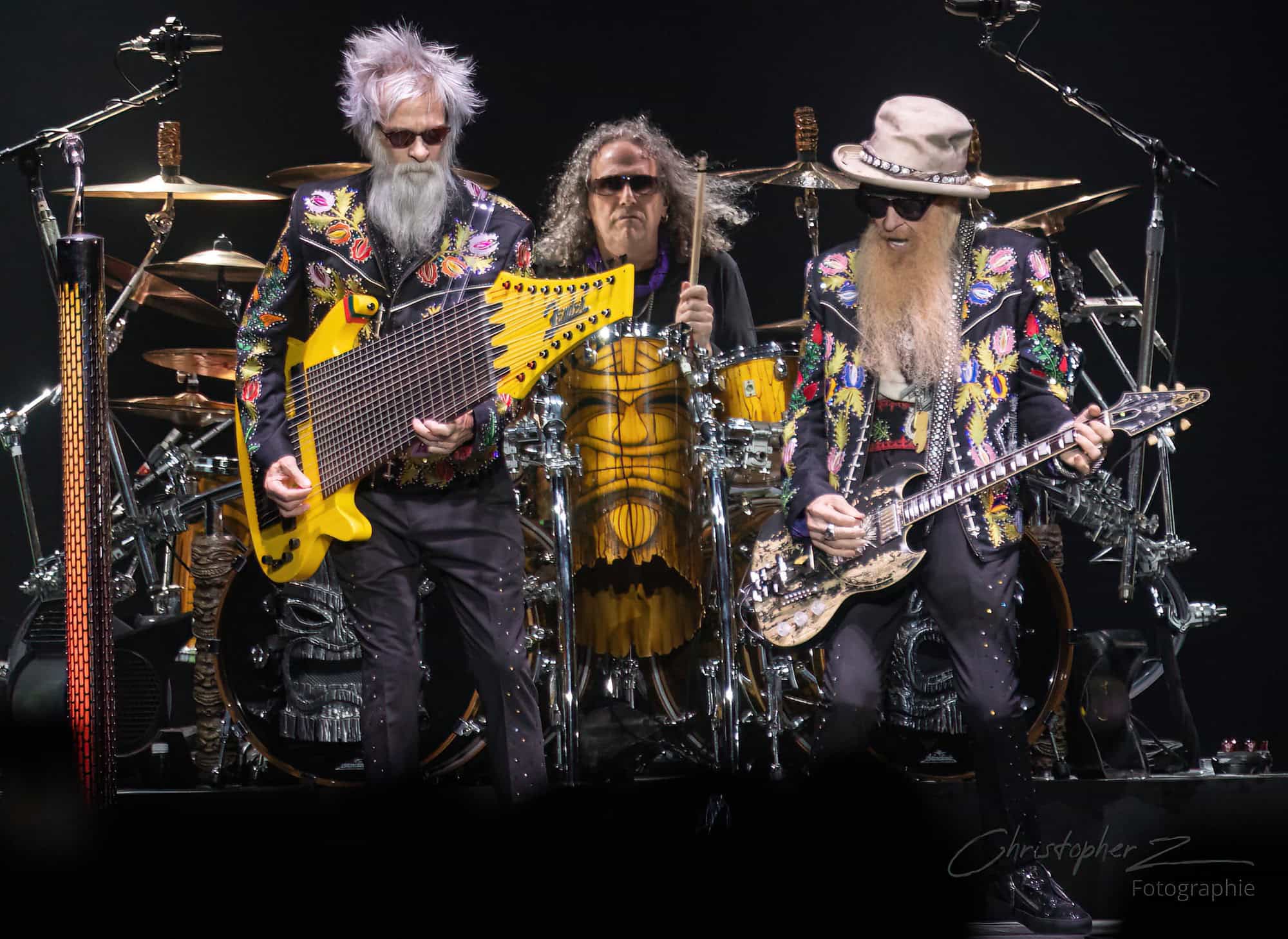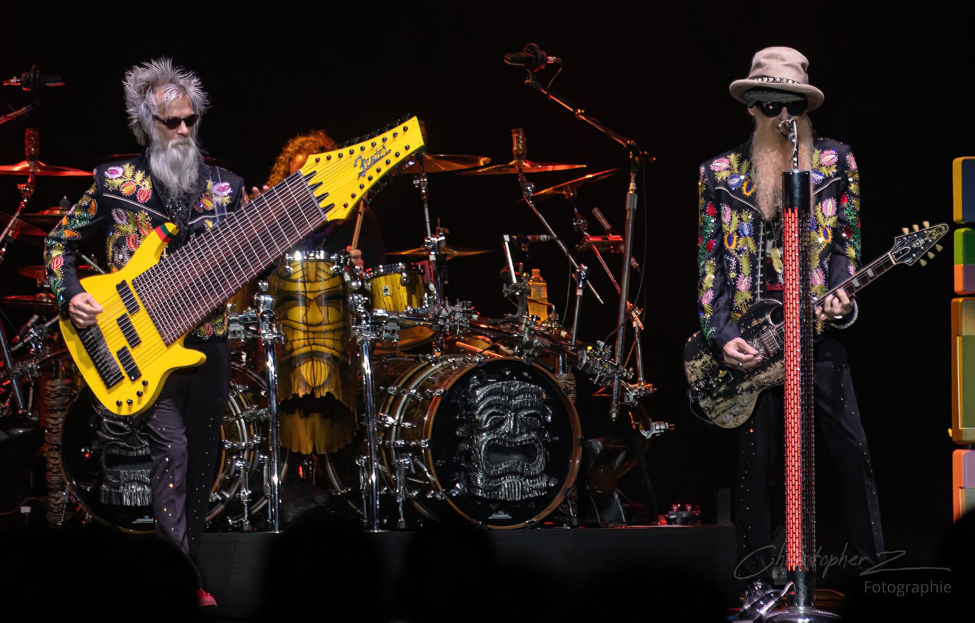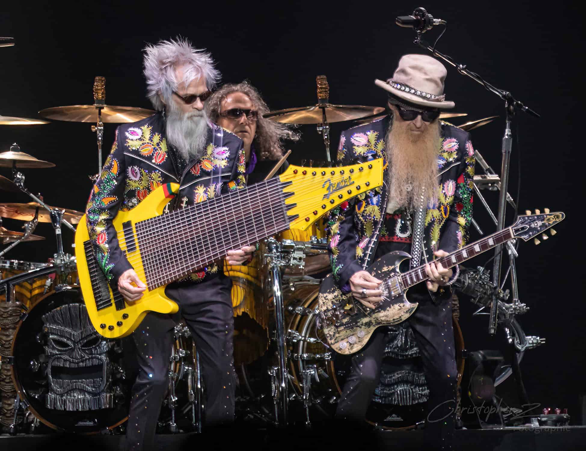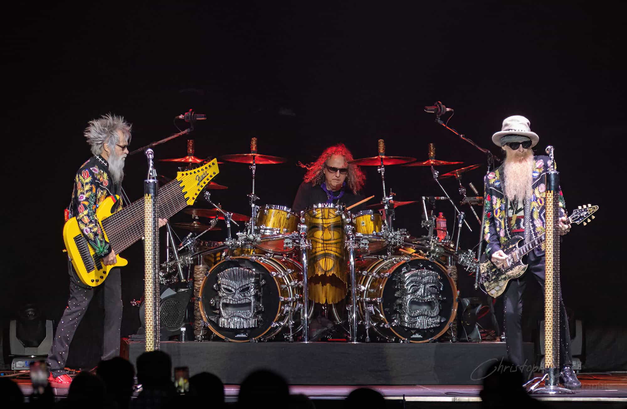 Gibbons’ voice was gravelly and sharp, that distinct ZZ Top growl still intact and loaded with swagger. Elwood Francis – wielding that absurd yellow 17-string mutant guitar at one point – looked like a Southern-fried anime character, and I mean that as a compliment. John Douglas, stepping in for the legendary Frank Beard (absent due to medical issues), was rock-solid and felt like part of the fabric. Not a fill-in. Not a maybe. Just… right.