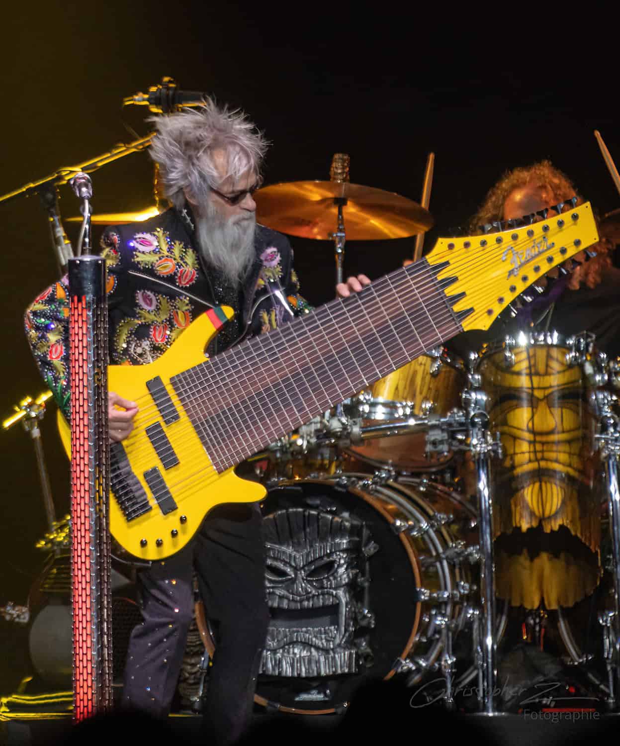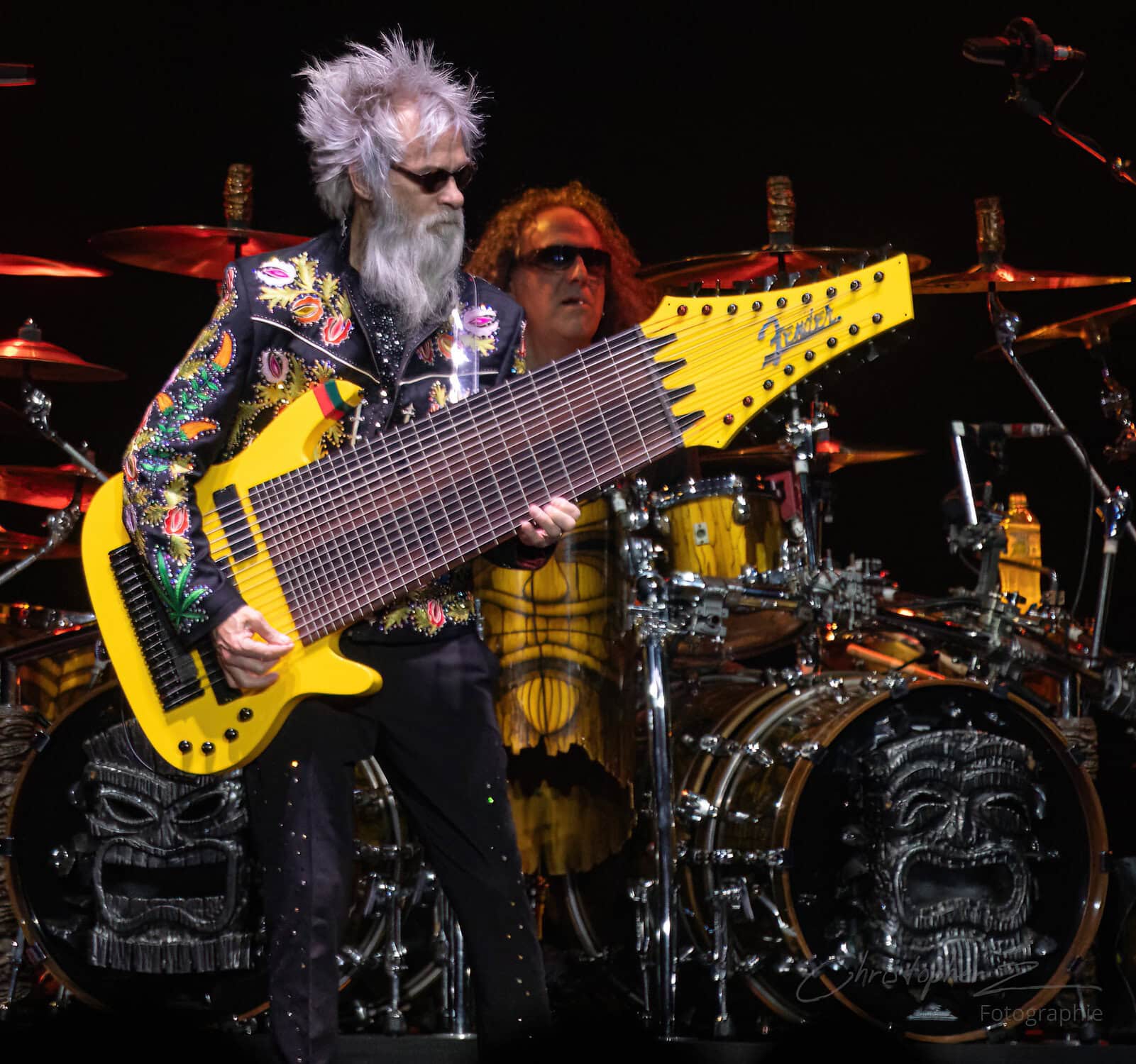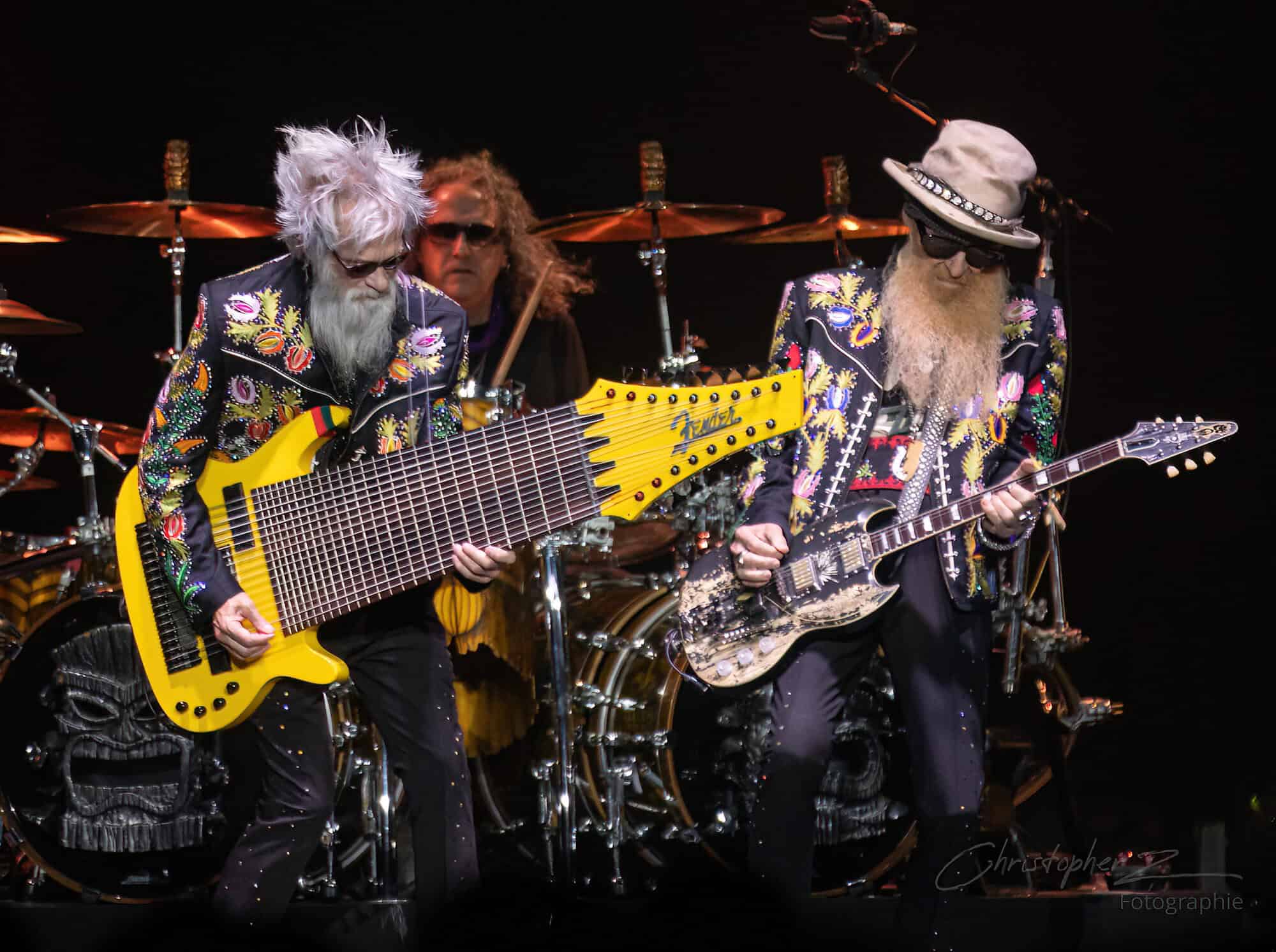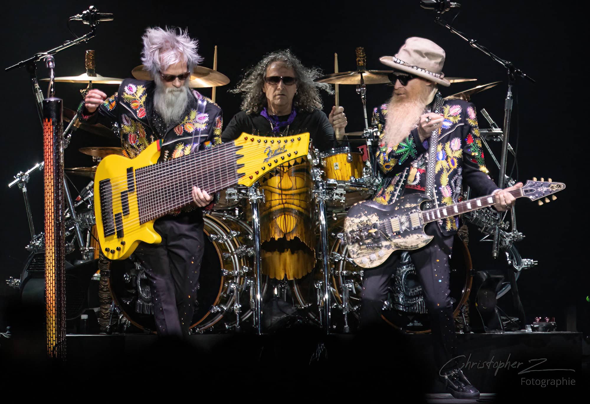 Gibbons’ voice was gravelly and sharp, that distinct ZZ Top growl still intact and loaded with swagger. Elwood Francis – wielding that absurd yellow 17-string mutant guitar at one point – looked like a Southern-fried anime character, and I mean that as a compliment. John Douglas, stepping in for the legendary Frank Beard (absent due to medical issues), was rock-solid and felt like part of the fabric. Not a fill-in. Not a maybe. Just… right.